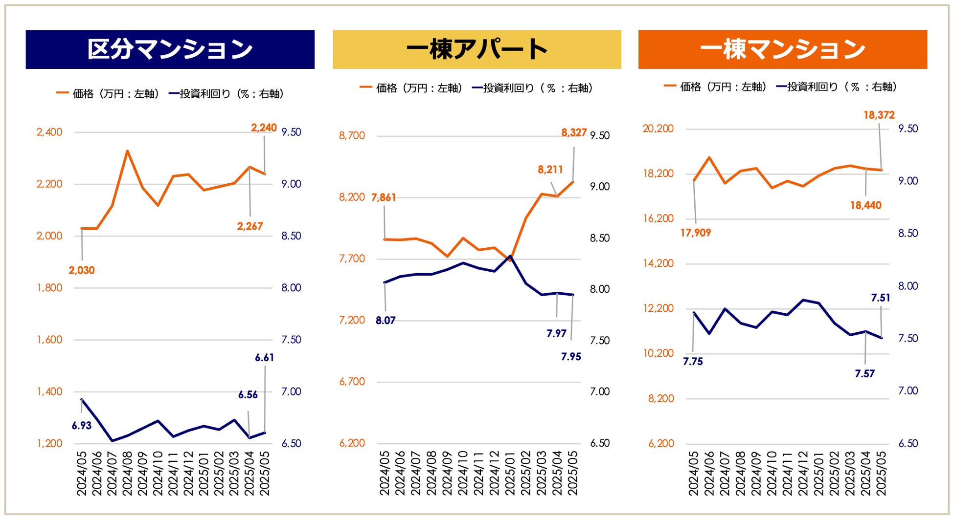 投資用一棟マンション、2か月連続で価格下がる 「収益物件 市場動向マンスリーレポート」2025年5月期