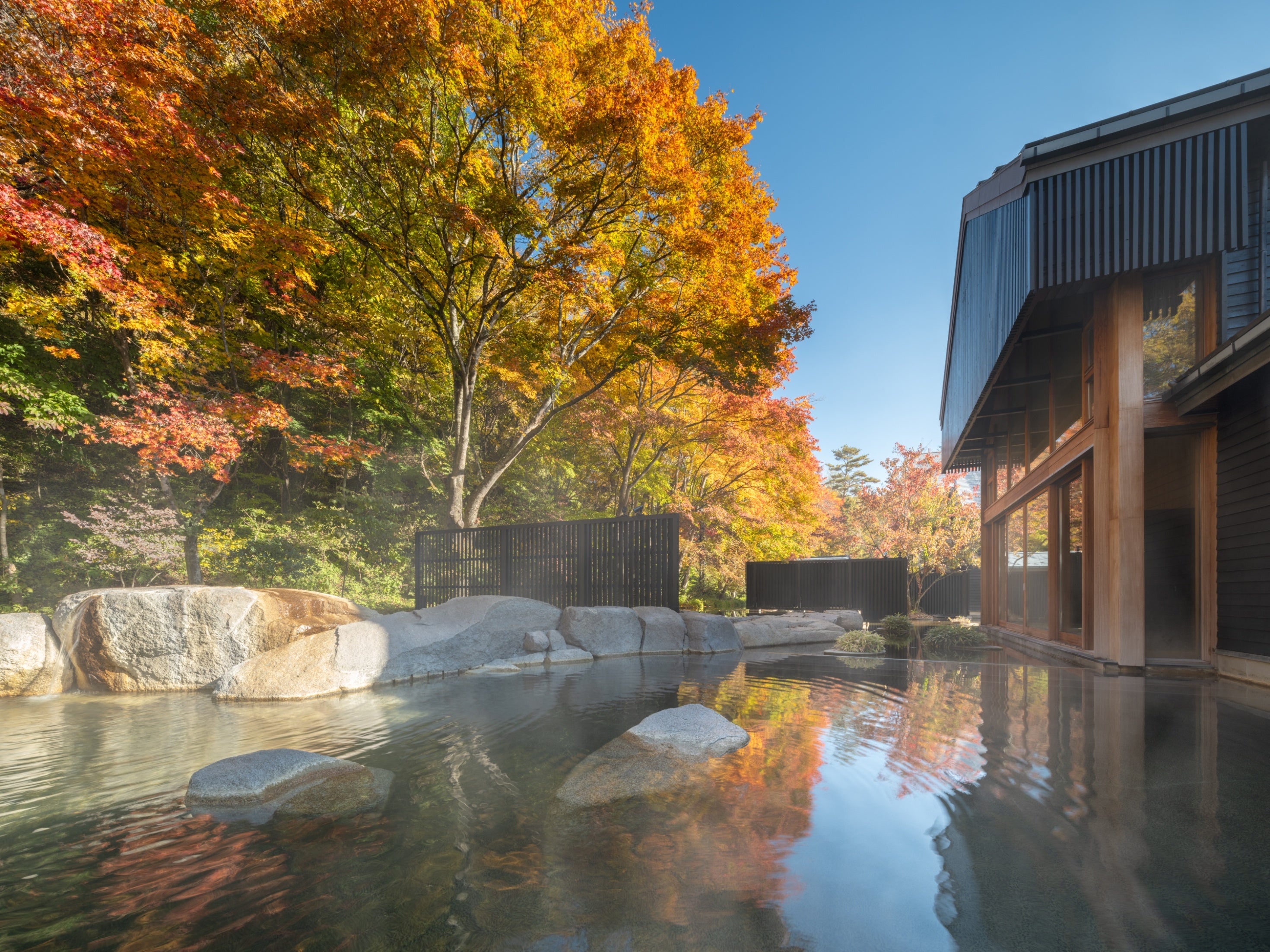 ~紅葉を満喫する、源泉かけ流しの温泉。湯上がりスイーツも新登場!~