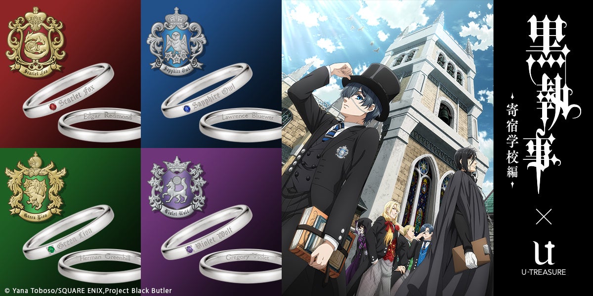 株式会社ユートレジャー(本社:東京都新宿区、代表取締役:伊藤 崇史)は、全世界シリーズ累計3,500万部超え『黒執事』のアニメ化6作目となる【黒執事-寄宿学校編-】とのコラボレーションアイテム「寮生/寮監ネームリング(指輪)」の予約受け付けを、2024年8月22日(木)~9月18日(水)の期間、ユートレジャーオンラインショップ、ユートレジャーコンセプトストア池袋にて行います。ユートレジャーでは初めての取り扱いライセンスとなります。