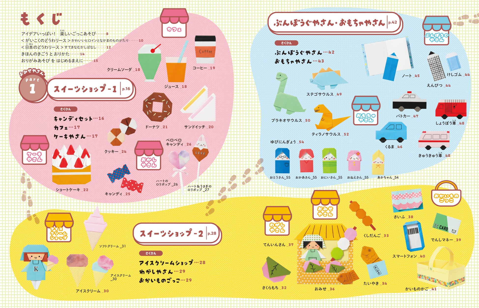 スイーツや洋服、おもちゃに文房具やアクセサリーなど、ごっこ遊びができるおりがみ作品をたくさん紹介!