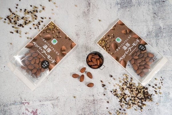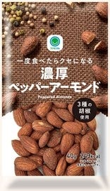 【内容】3種類の胡椒(ブラックペッパー、ホワイトペッパー、グリーンペッパー)と岩塩を使用し、スパイシーかつ濃厚に味付けをしたアーモンドです。香ばしく煎り上げたカリフォルニア産アーモンドを使用しています。