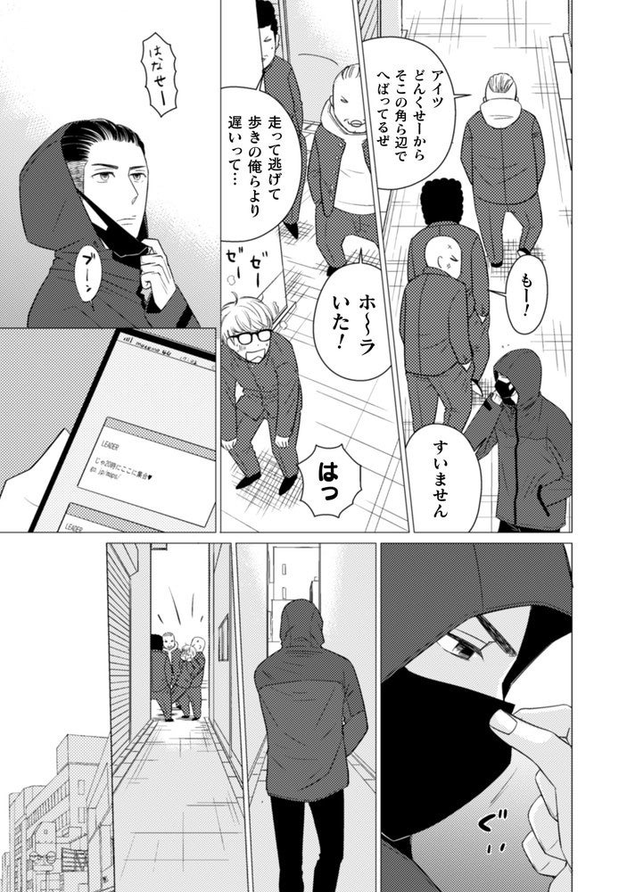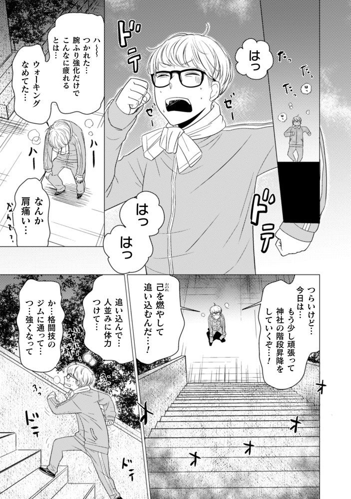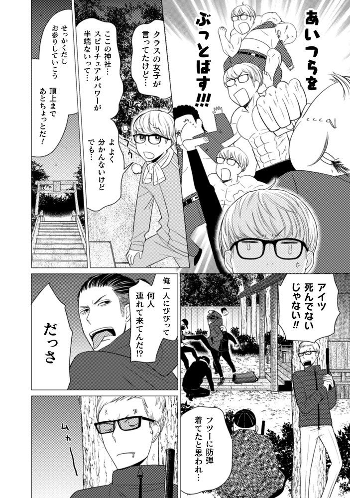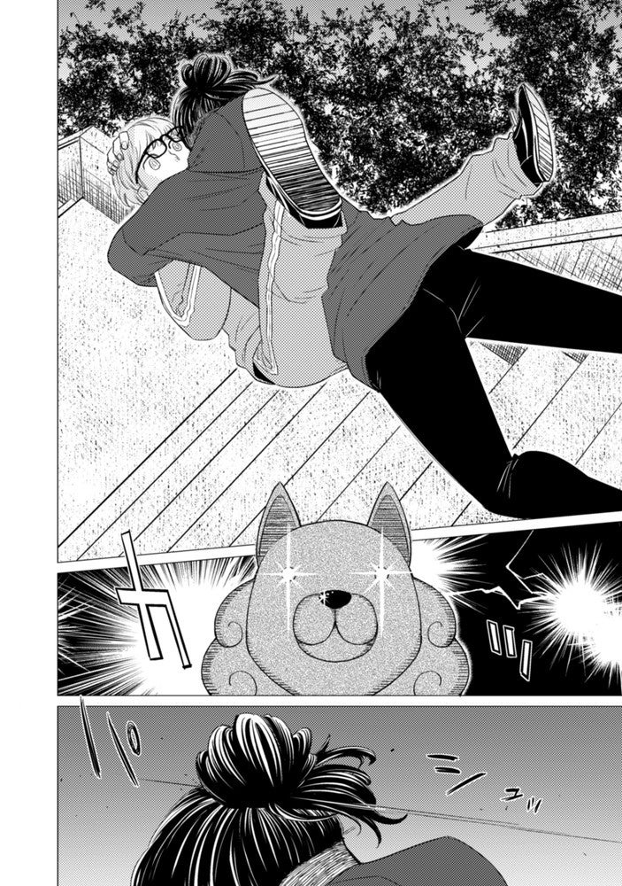 組織の追手から逃げ切るはずが、神社の階段で体を鍛えていた気弱男子・寅太郎と衝突してしまう!