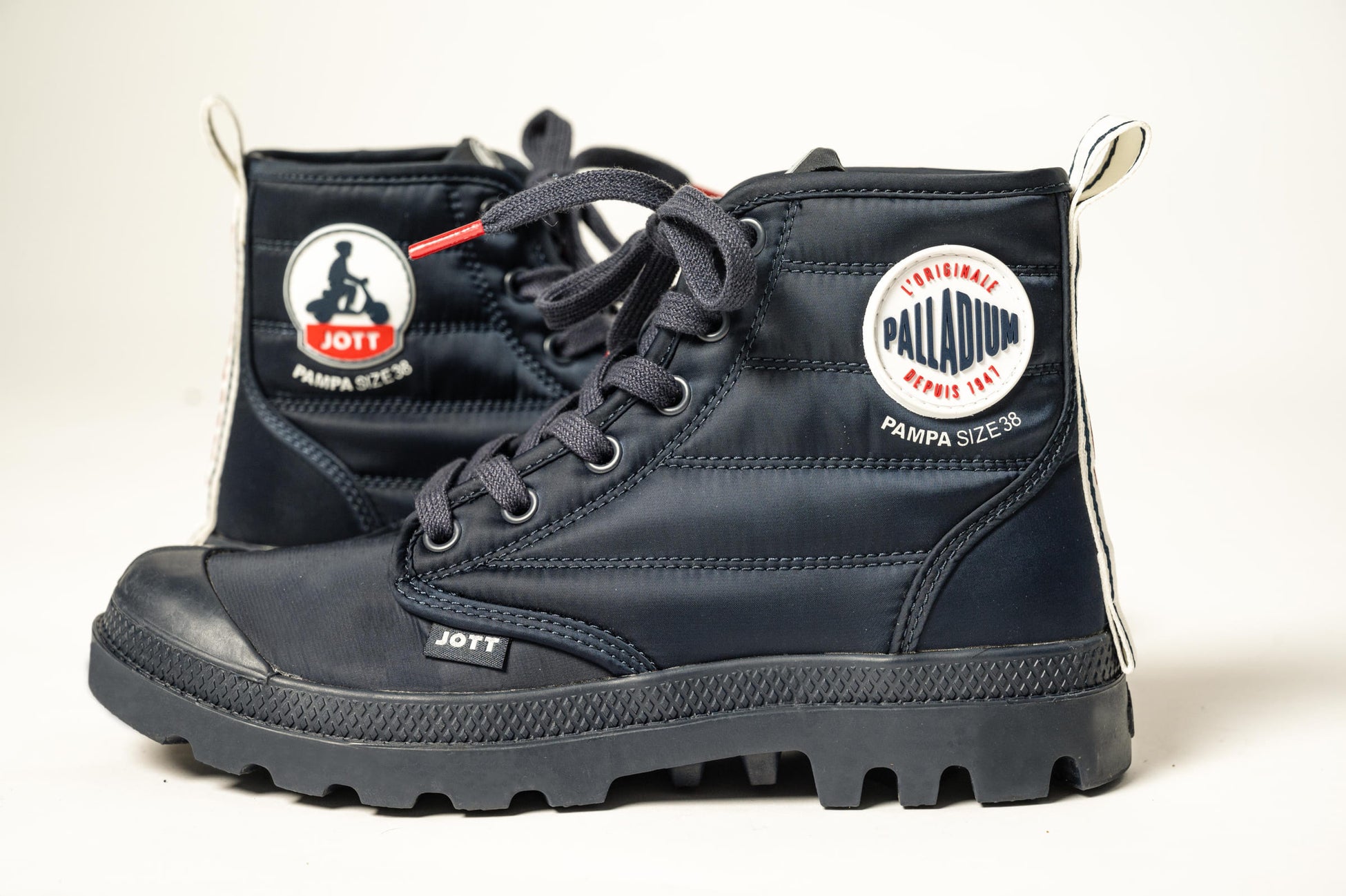 フランスのブーツスニーカーブランドPALLADIUM(パラディウム)は、フランスのダウンブランドJOTT(ジョット)とコラボしたハイカットブーツをリリース。11月1日より、パラディウムのオフィシャルストアS-Rush各店舗や枚方T-SITEで開催中のポップアップショップなどで販売を開始します。