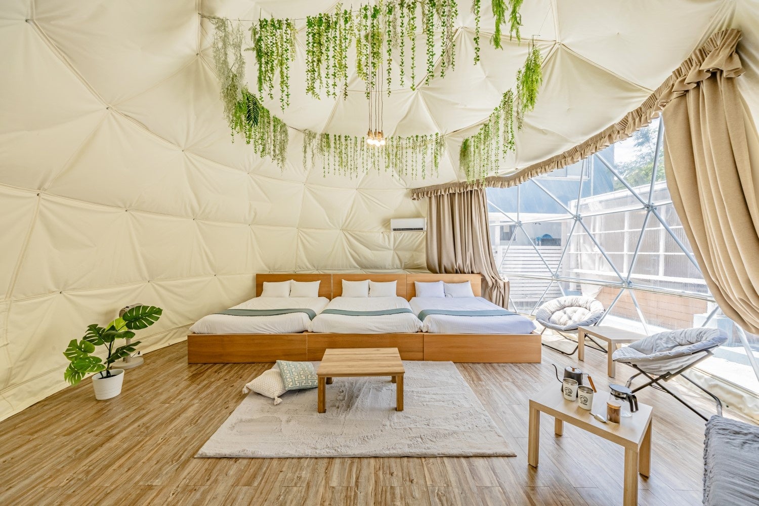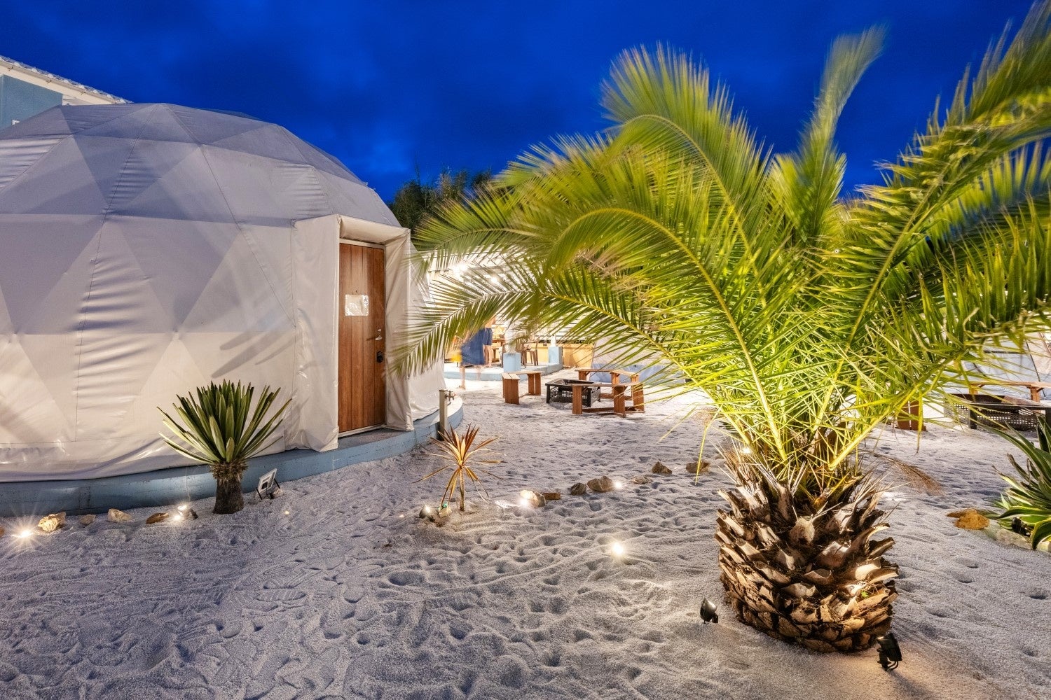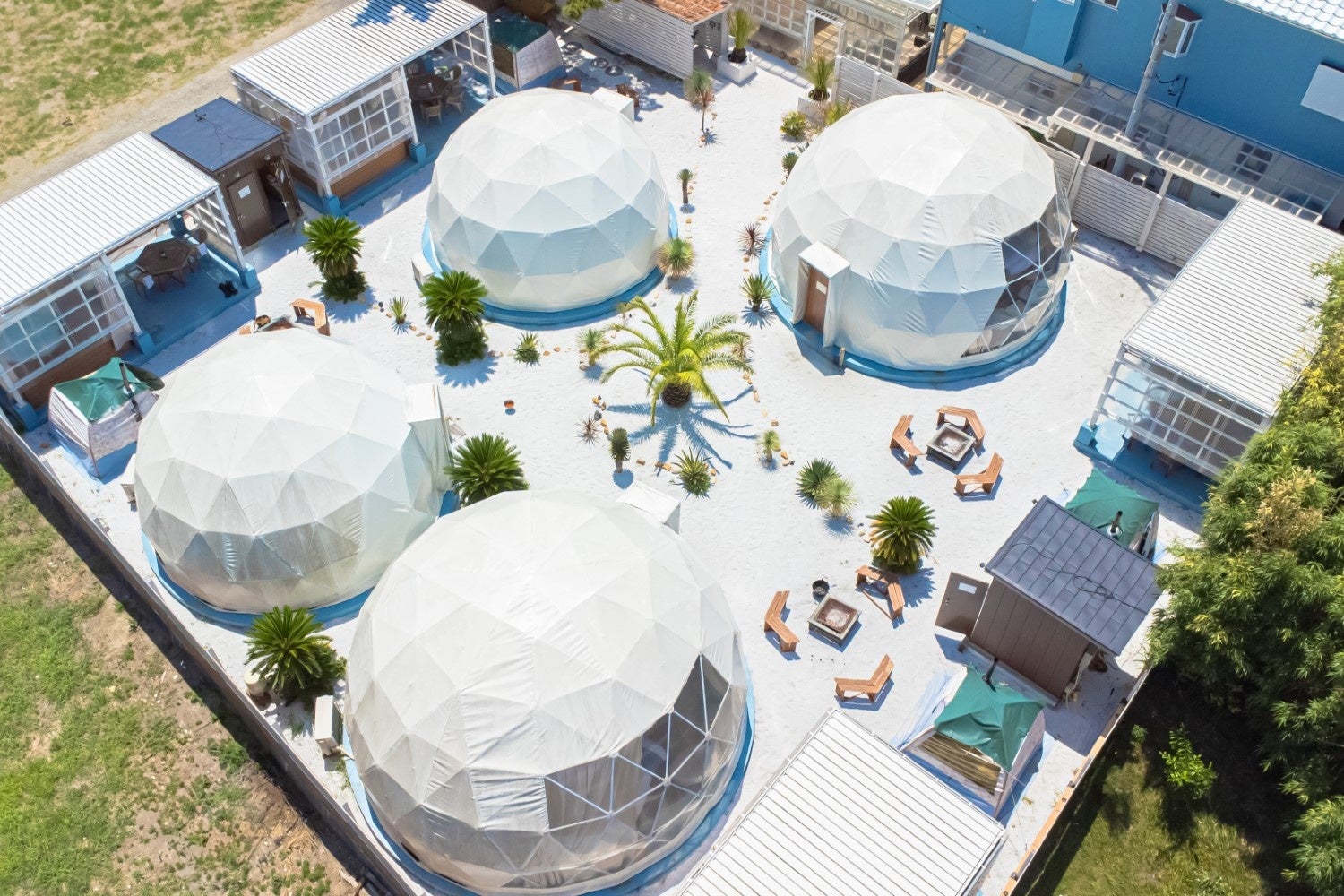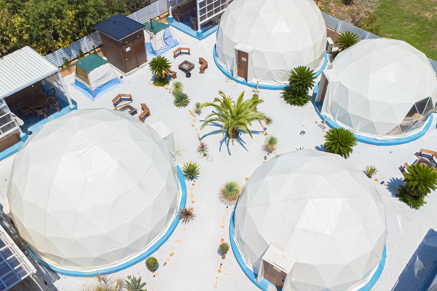 東京都心エリアから好アクセスのビーチサイドに位置する、雲海に浮かぶ4棟のドームテント型アウトドアリゾート。