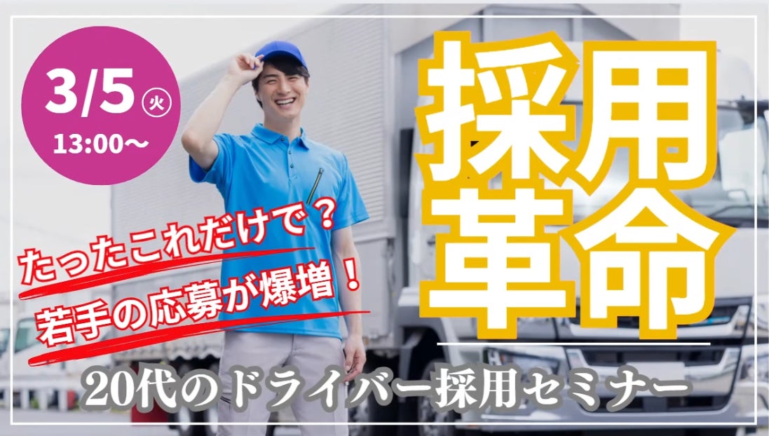 大きく変わる物流業界の採用市場トレンドと、次なる一手を理解できる!| 2024年3月5日(火)開催「20代のドライバー採用セミナー」