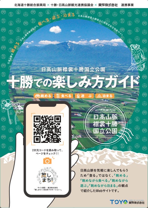 十勝を活動拠点とする企業である東洋株式会社、新国立公園エリア内6市町村で構成される十勝・日高山脈観光連携協議会と十勝総合振興局の三者による連携事業として、新たに国立公園に指定された「日高山脈襟裳十勝国立公園」の魅力を発信するウェブサイトを作り、1月29日に公開しました。