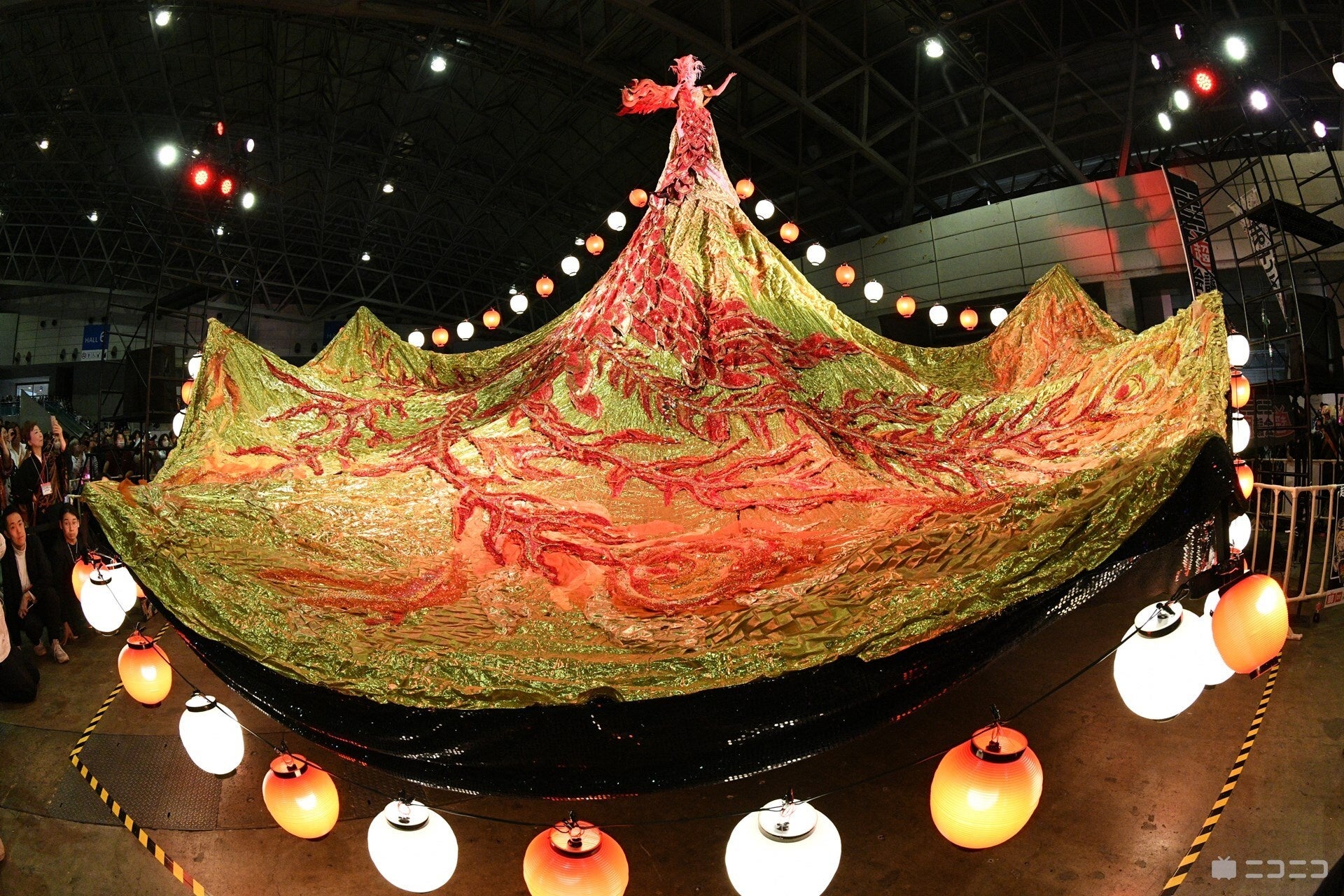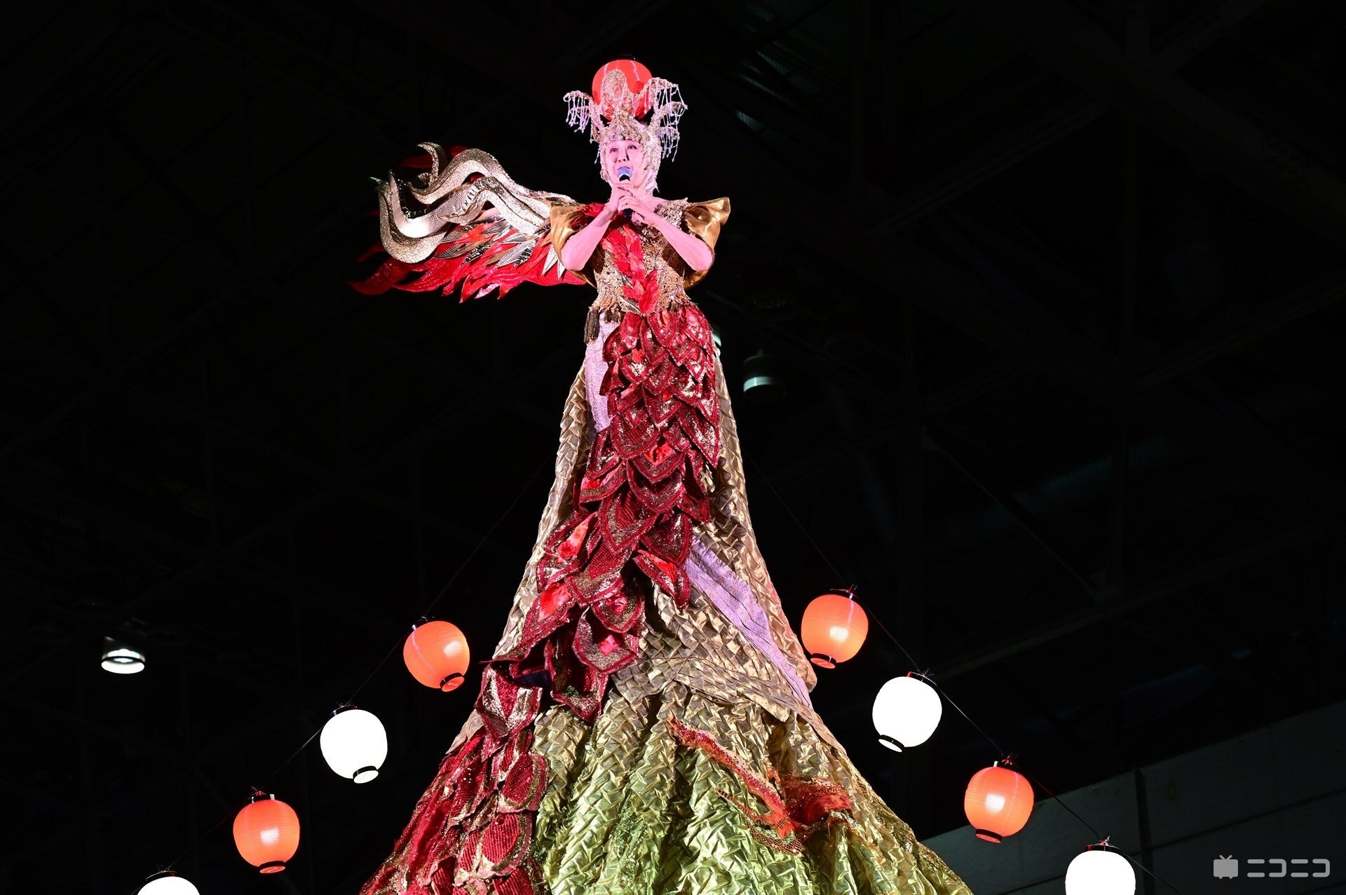 ラスボスこと小林幸子は、ニコニコ超会議の“ネ申”「サチネ申さま」(さちがみさま)として、「超ニコニコ盆踊り」にも登場。やぐら風の巨大衣装をまとい、『千本桜』などを歌唱しながら、讃え踊るユーザーたちを前に圧巻のパフォーマンスを披露しました。