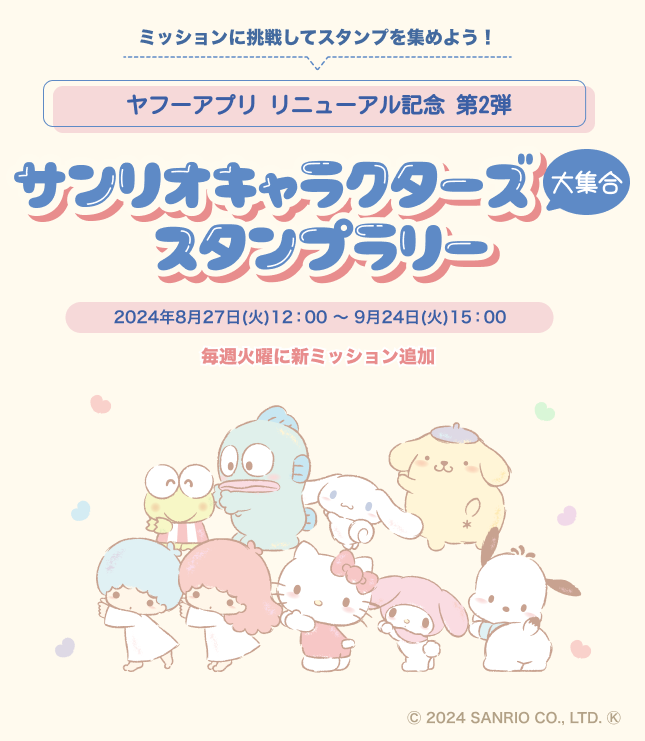 【Yahoo! JAPANアプリ】リニューアル記念キャンペーン第2弾!「サンリオキャラクターズ大集合」スタンプラリーを開催