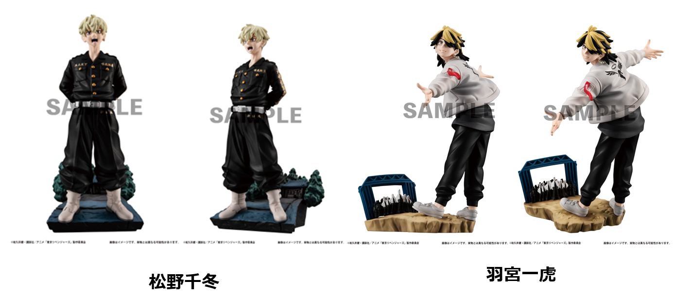 TVアニメ『東京リベンジャーズ』の作中シーンを立体化した「TOMAN HEROIC SCENES」の第二弾である本商品は、仲間のために甚平姿で駆け付けるマイキー、私服姿のドラケンとエマ、タケミチを壱番隊隊長に任命する千冬、芭流覇羅を率いる一虎の4シーンをラインアップしています。