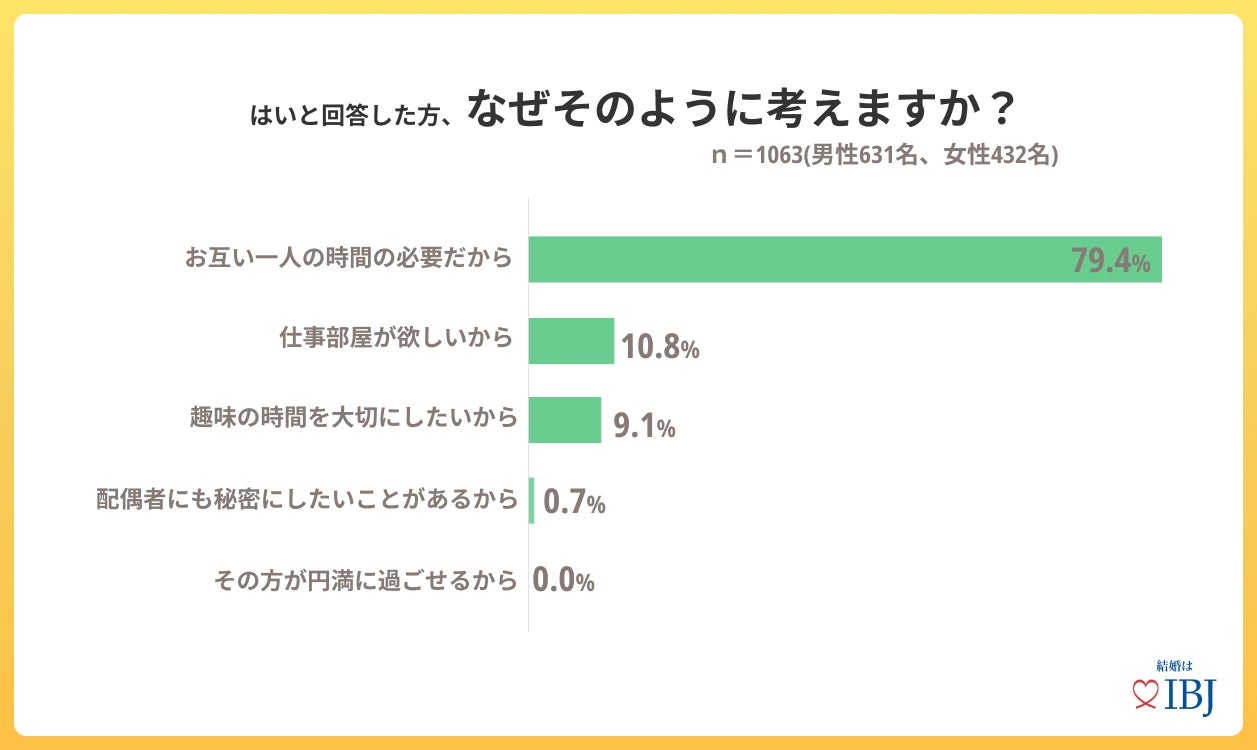 理由として「お互いに一人の時間も必要だから(79.4%)」が最多。