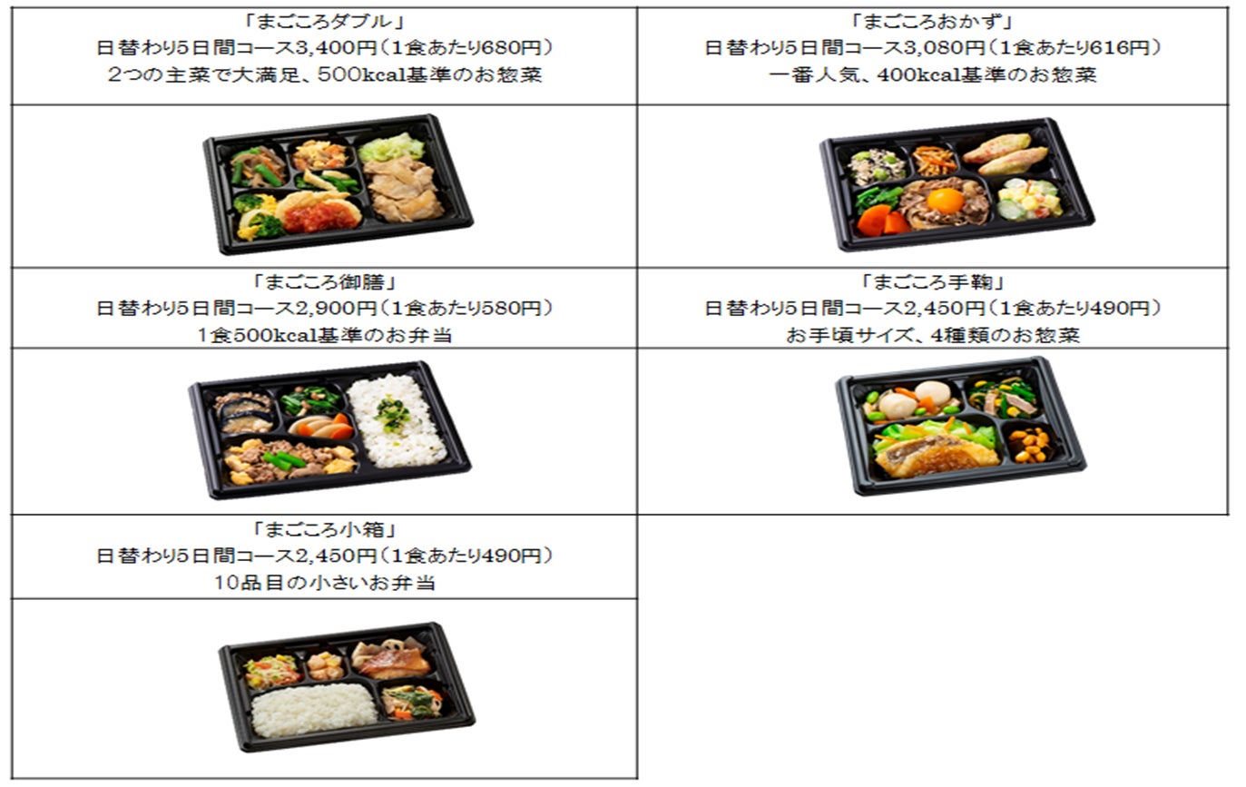 商品の特徴としては、①繊維の多い食材を避ける ②加熱時間を長くする ③ご飯を柔らかめに炊く ことで、食べやすさに配慮したお弁当となっています。新商品「まごころ小箱(小)」は、食の細くなった高齢者の方を中心にご利用いただけると考えております。