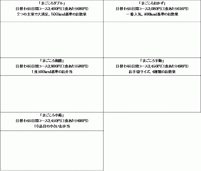 | 熱量 | 250kcal以上(5日間コース平均) |