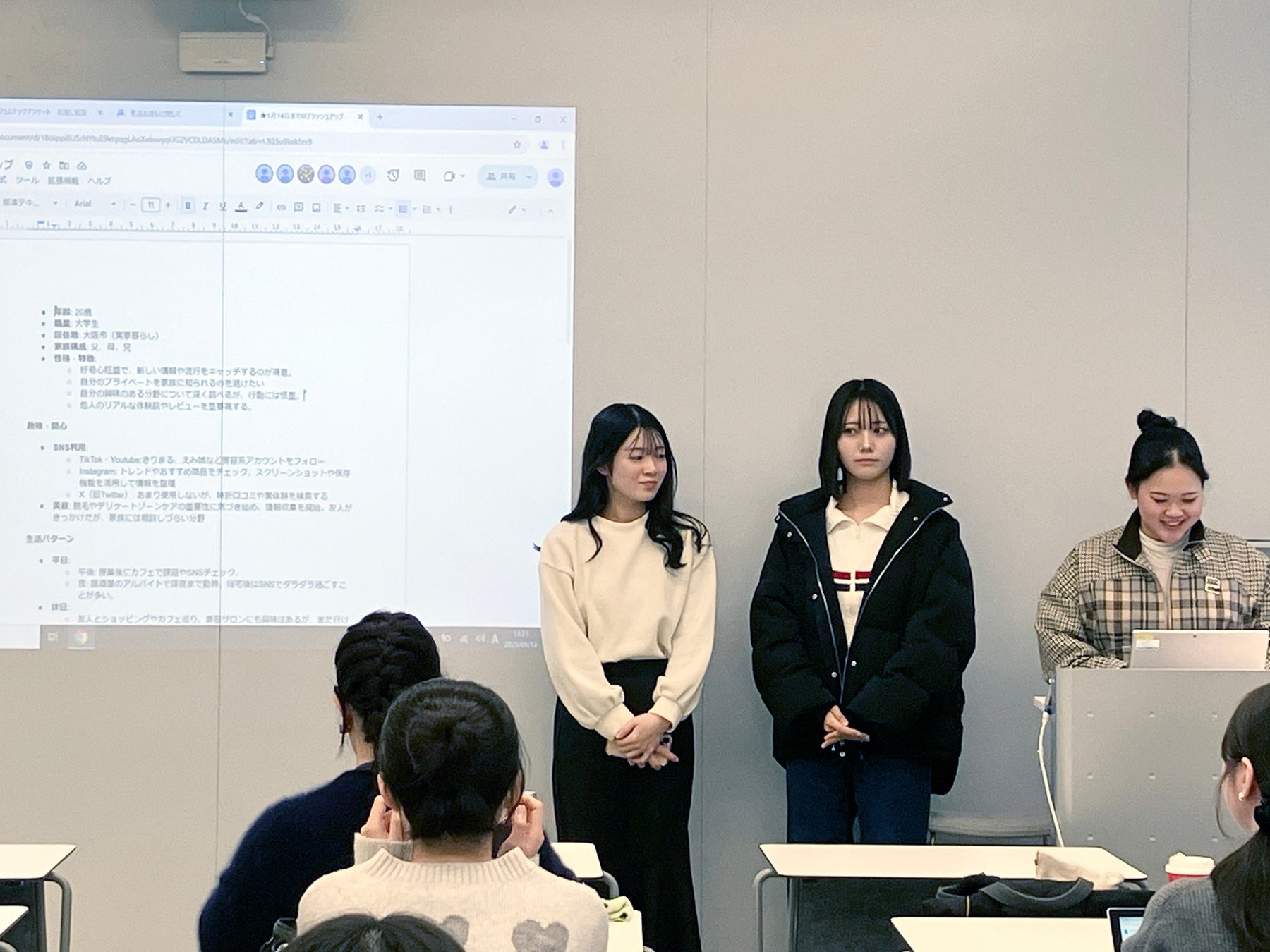 これらの調査結果をもとにターゲットとするペルソナを設定。Z世代に支持を集めているインフルエンサーを起用したSNSでのタイアップなど、ペルソナごとのPR施策をゼミ生が提案しました。2025年3月2日(日)に開催された「KANSAI COLLECTION 2025 SPRING&SUMMER」にてこれまでの取組内容を展示し、Z世代へのフェムケアの認知向上と理解促進につながる啓発活動を行いました。