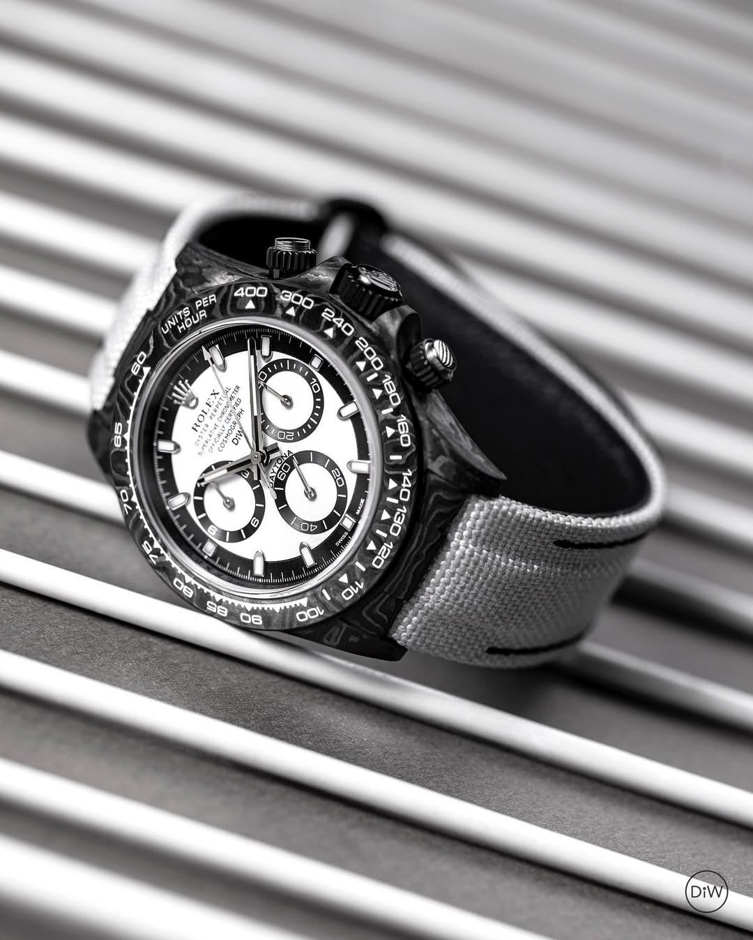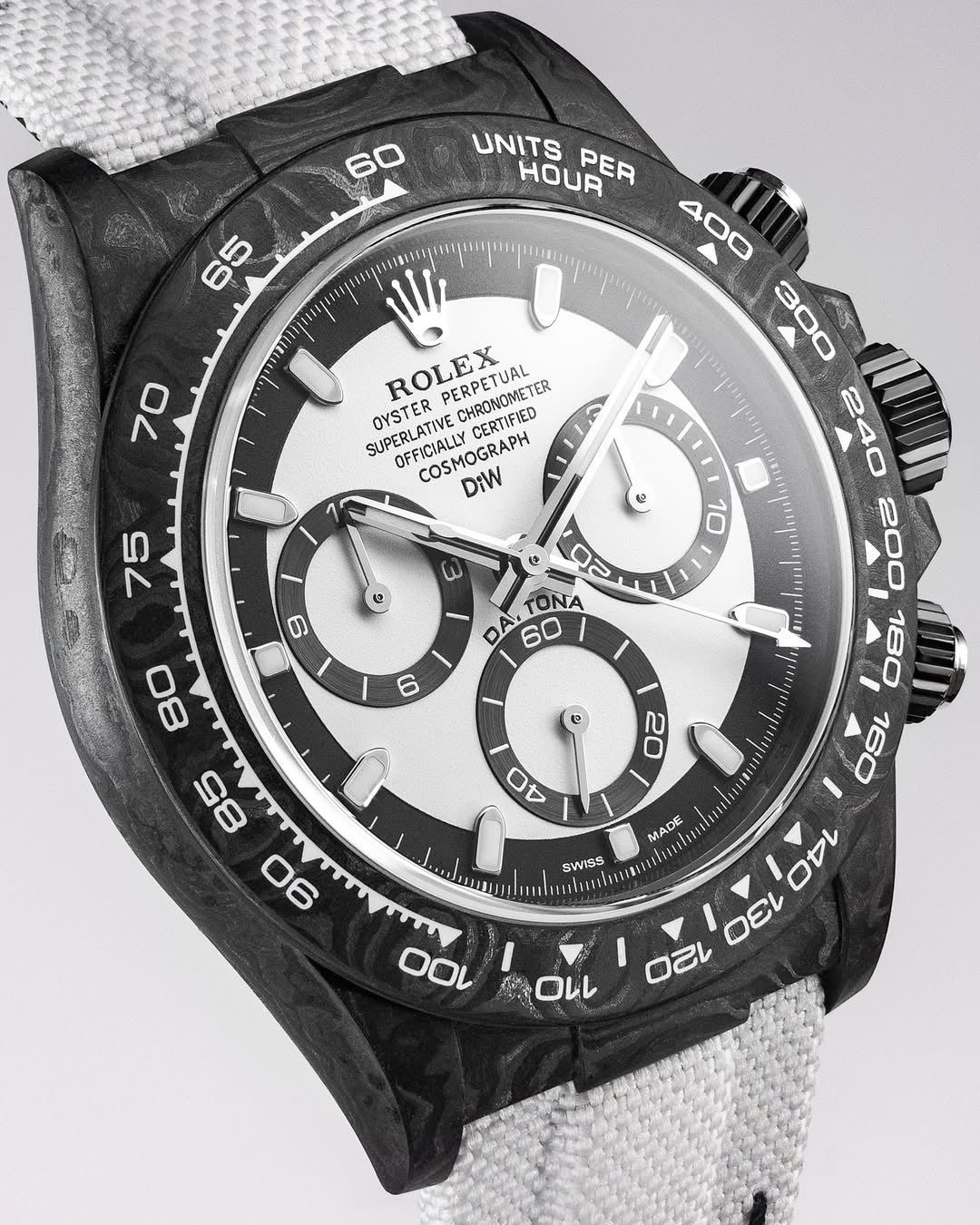 カスタム時計メーカー「DIW」から、人気モデルの意匠を受け継いだ「CARBON ROLEX DAYTONA Cream V2」が登場。