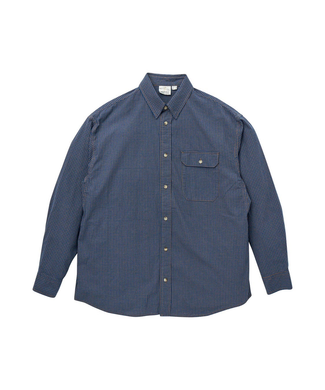 肌触りのよいチェック柄のコットンシャツ。脇にはガゼット、左胸にはフラップポケットを備えています。
