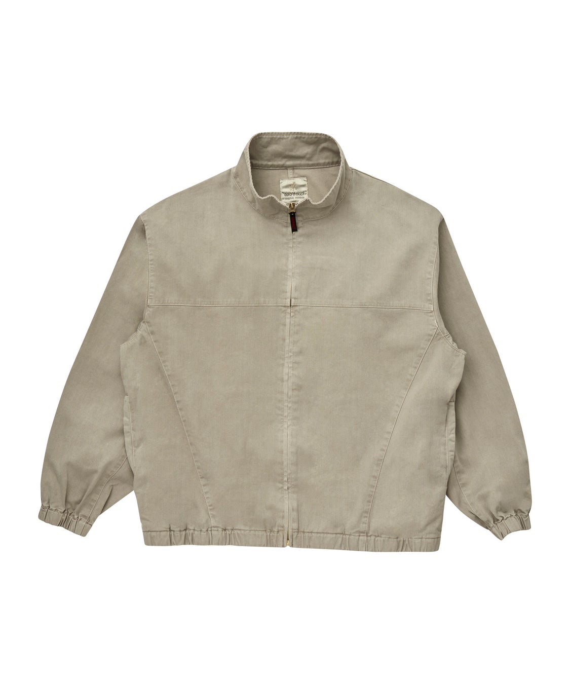 耐久性が高く、ハリコシのある、激しい動きにも耐えるオーガニックコットンツイルを使用した、スタンドカラーのジャケットです。袖口と裾はインゴム仕様、フロントはジッパー仕様のシンプルなブルゾンデザインで、身頃の切替えがポイントになっています。