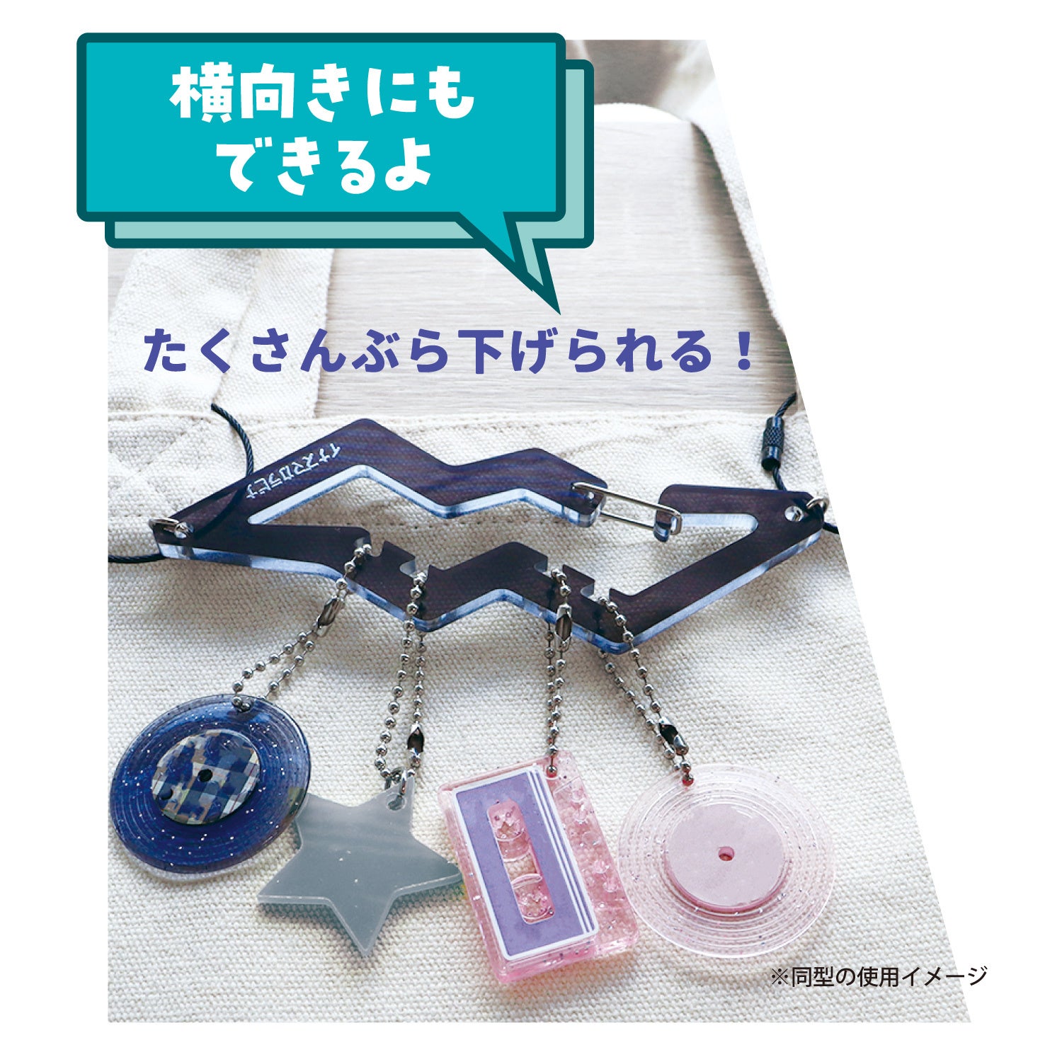 「イナズマ・モクモクカラビナ」は、トートバッグやスクールバッグの持ち手に取り付けるだけで、集めたチャームや推しのぬいぐるみなど、お気に入りのアイテムをたっぷり吊るして楽しめるカラビナです。