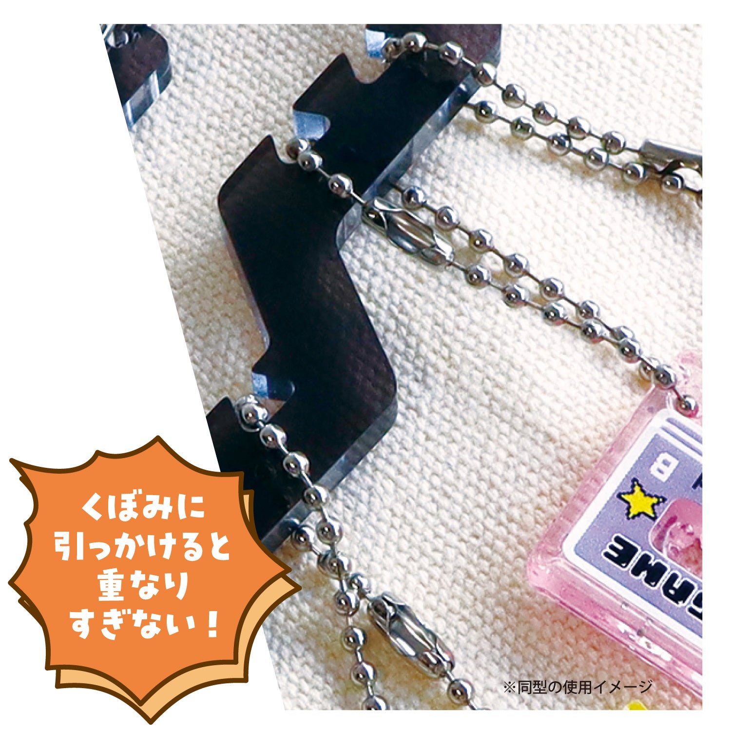 取り付け部分はカラビナ構造になっており、ボールチェーン以外のチャームも簡単に装着OK。バッグの持ち手に簡単に取り付けることもできるので、持ち運びのアレンジがぐっと広がります。