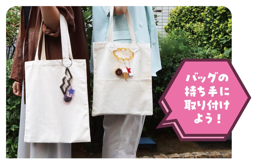 さらに付属のワイヤーリングを使えば、縦にも横にもアレンジ自在。キーホルダーやチャームの種類に合わせてスタイルチェンジを楽しめます。バッグを自分らしくコーディネートしたり、“推しバッグ”づくりができるのが魅力です。