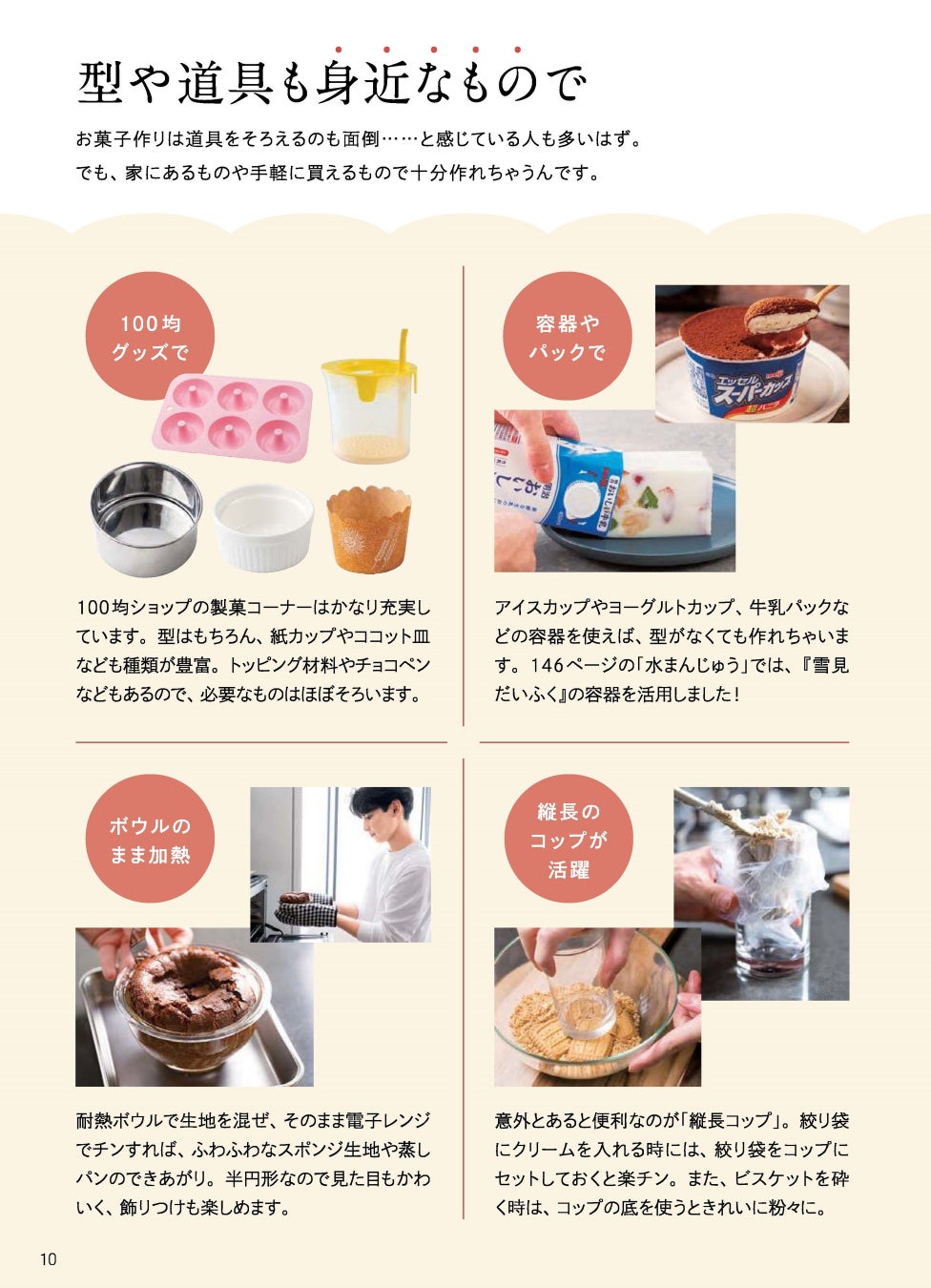 型を使わず牛乳パックやヨーグルトカップをそのまま使うレシピもあり、特別な道具や材料を用意しなくても作れるレシピが満載。「今食べたい!」を叶えるレシピです。