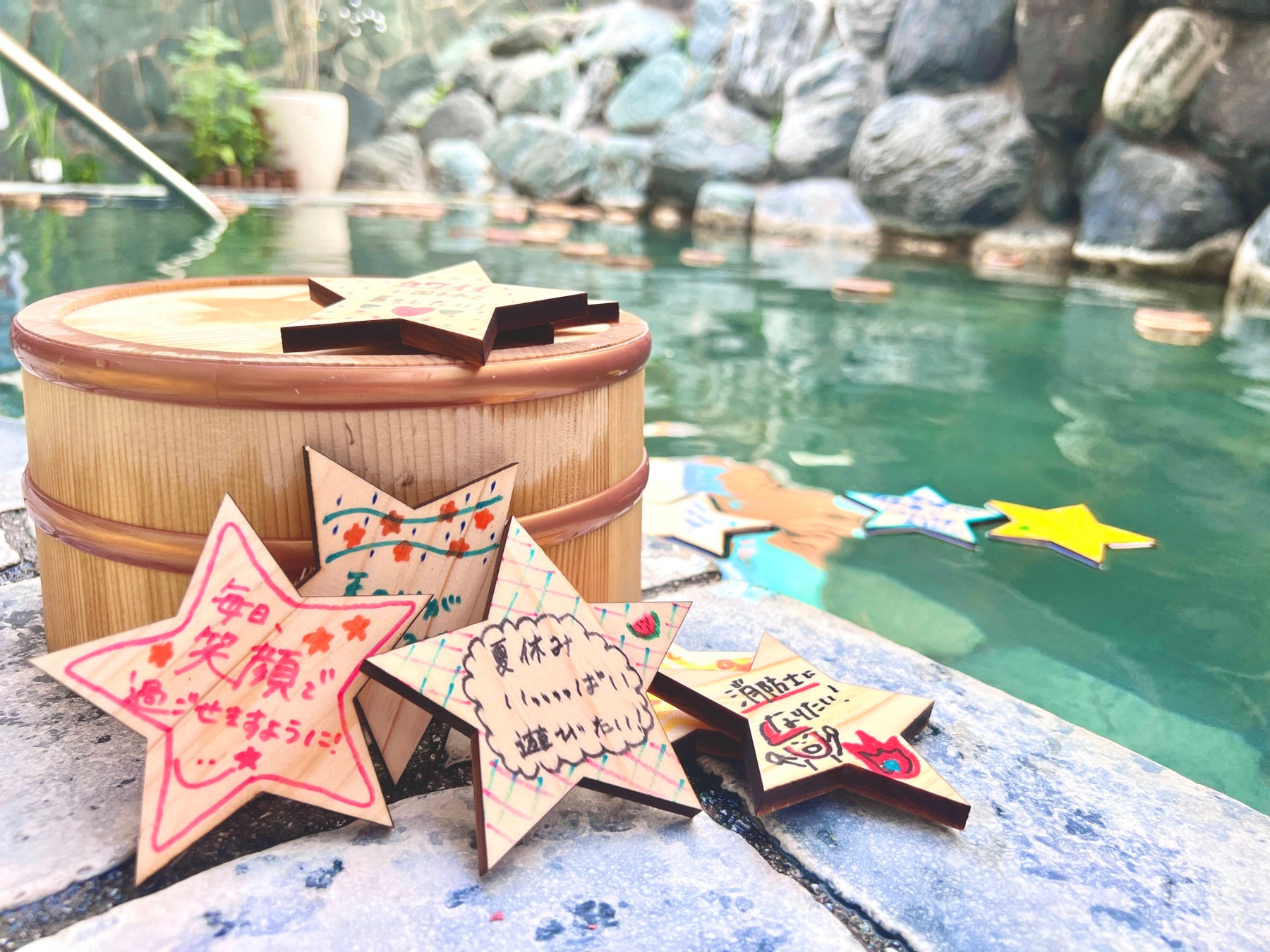 星形の入浴木に願い事を書いておふろに浮かべたり、koyoiとコラボしたドリンクの販売、自分好みの星空を描くアート体験など、七夕限定のイベントをお楽しみいただけます。