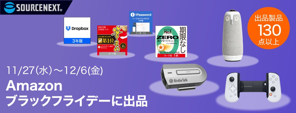 ソースネクスト株式会社(本社:東京都港区、代表取締役社長:小嶋 智彰)は、2024年11月29日(金)0時から12月6日(金)23時59分まで開催される「Amazon ブラックフライデー」において、弊社の人気製品130製品以上を最大91%割引で提供することをお知らせいたします。