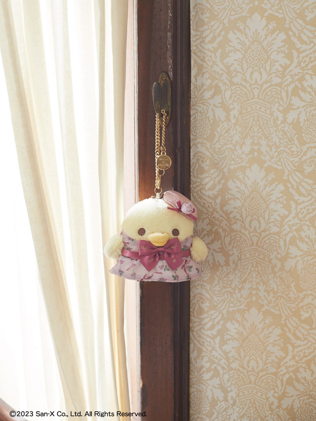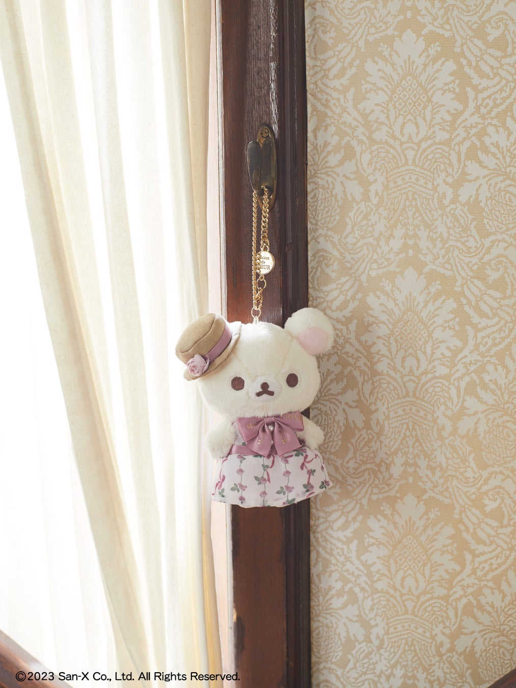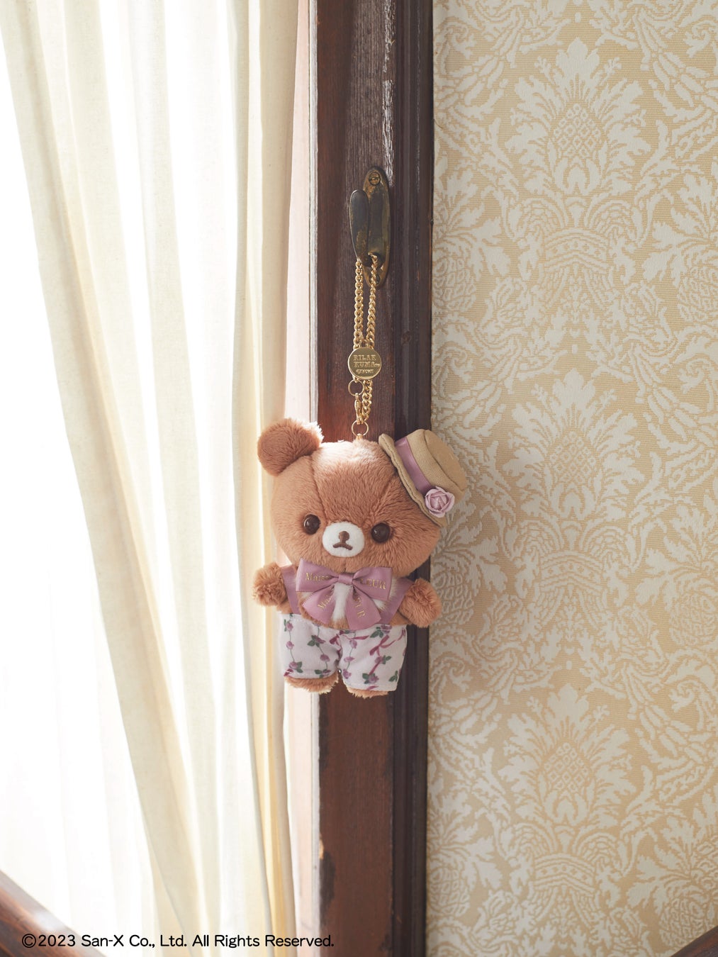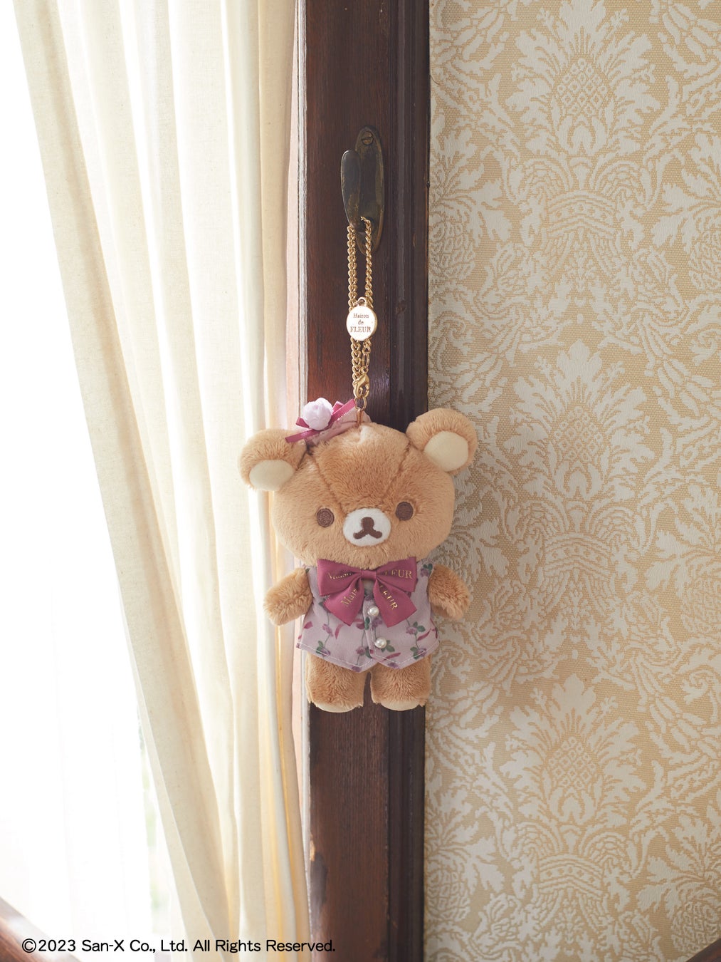 本コラボでは、アニバーサリーを記念し、ピンクのローズ衣装でおめかしたリラックマたちが登場。毎回人気のバッグチャームに加え、スペシャルコラボぬいぐるみもご用意いたしました。各ぬいぐるみには、Maison de FLEURのロゴ入りテープリボンを襟元に、ローズモチーフを耳元やハットに添えました。こだわりのコスチューム姿にぜひご注目ください。