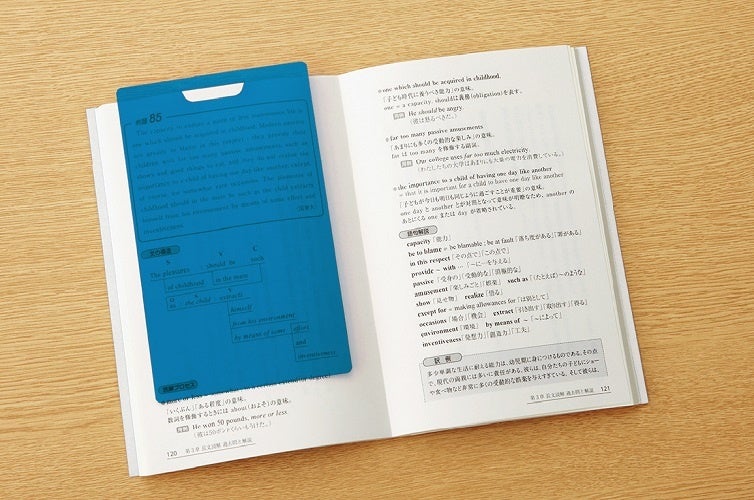 青色は落ち着いた印象を与えるイメージがあり、集中に効く色とされています。(※)青色シートを採用することで、暗記学習にもよい効果を生み出すことを期待しています。