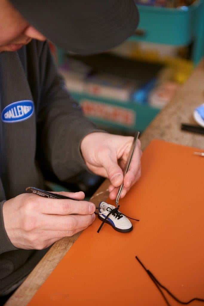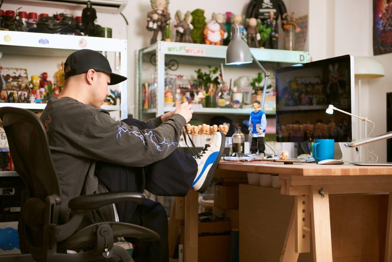 今回そのオーセンティックな一足を「Kiddo」がフィギュアを製作する際に用いる工程を落とし込んでカスタマイズ。アッパーは、フィギュアの原型を作る油土や仕上げとなるサンディングと塗装のプロセスをなめらかな質感のスウェードと毛足の長いスウェードを使い分けて演出しています。