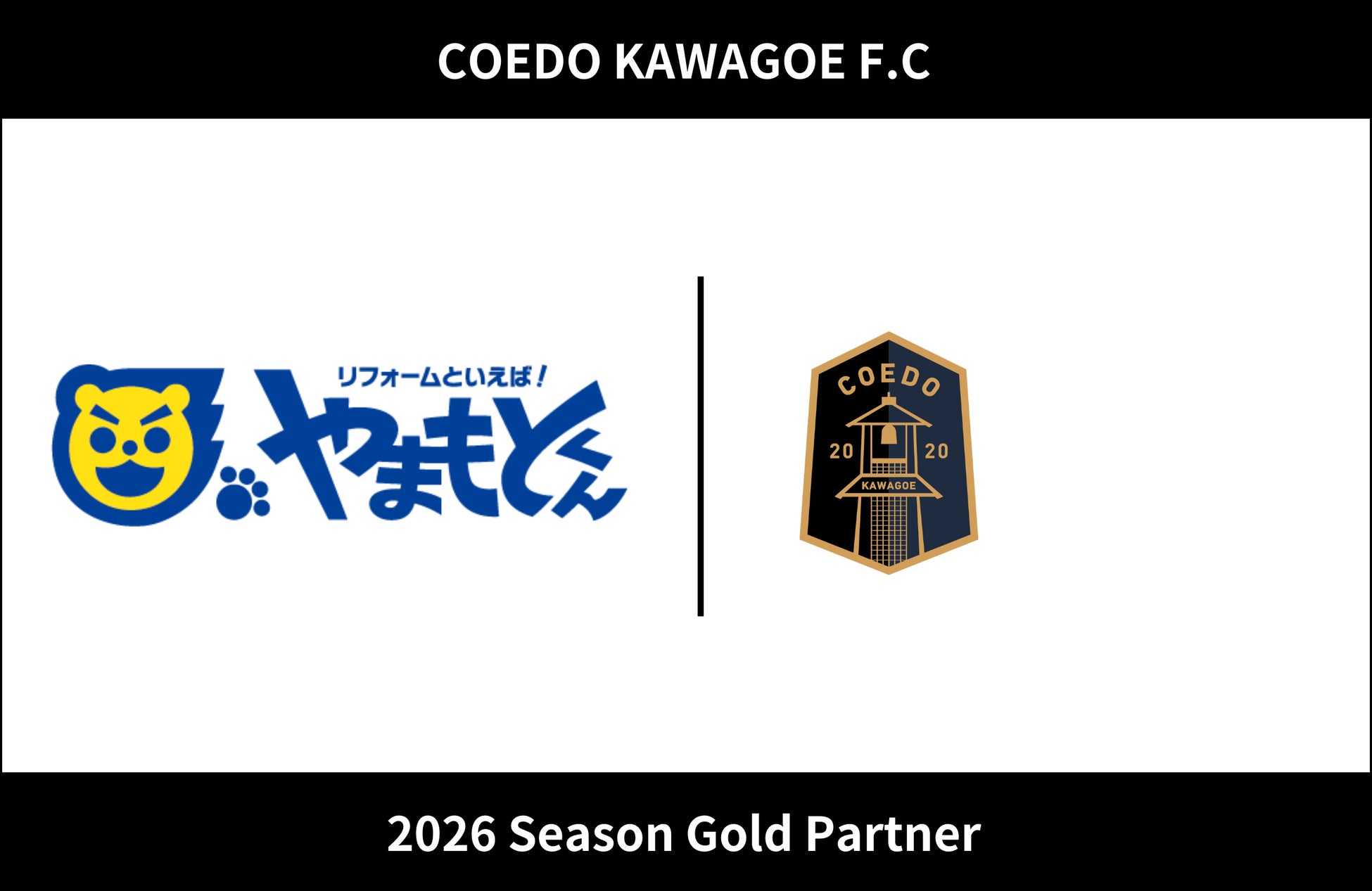 COEDO KAWAGOE F.Cを運営するCOEDO KAWAGOE F.C株式会社(埼玉県川越市、代表取締役 有田和生)は、埼玉を中心にリフォーム事業・リノベーション事業を展開する株式会社やまもとくん(東京都千代田区、代表取締役 山本雅俊)と2026シーズンのゴールドパートナー契約を増額にて締結したことを発表いたします。