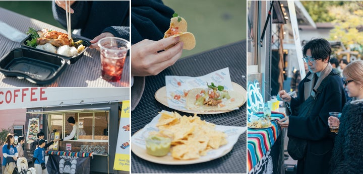 小腹が空いたら、会場内のフードトラックでタコスやチキン、スイーツを注文してひと休み。