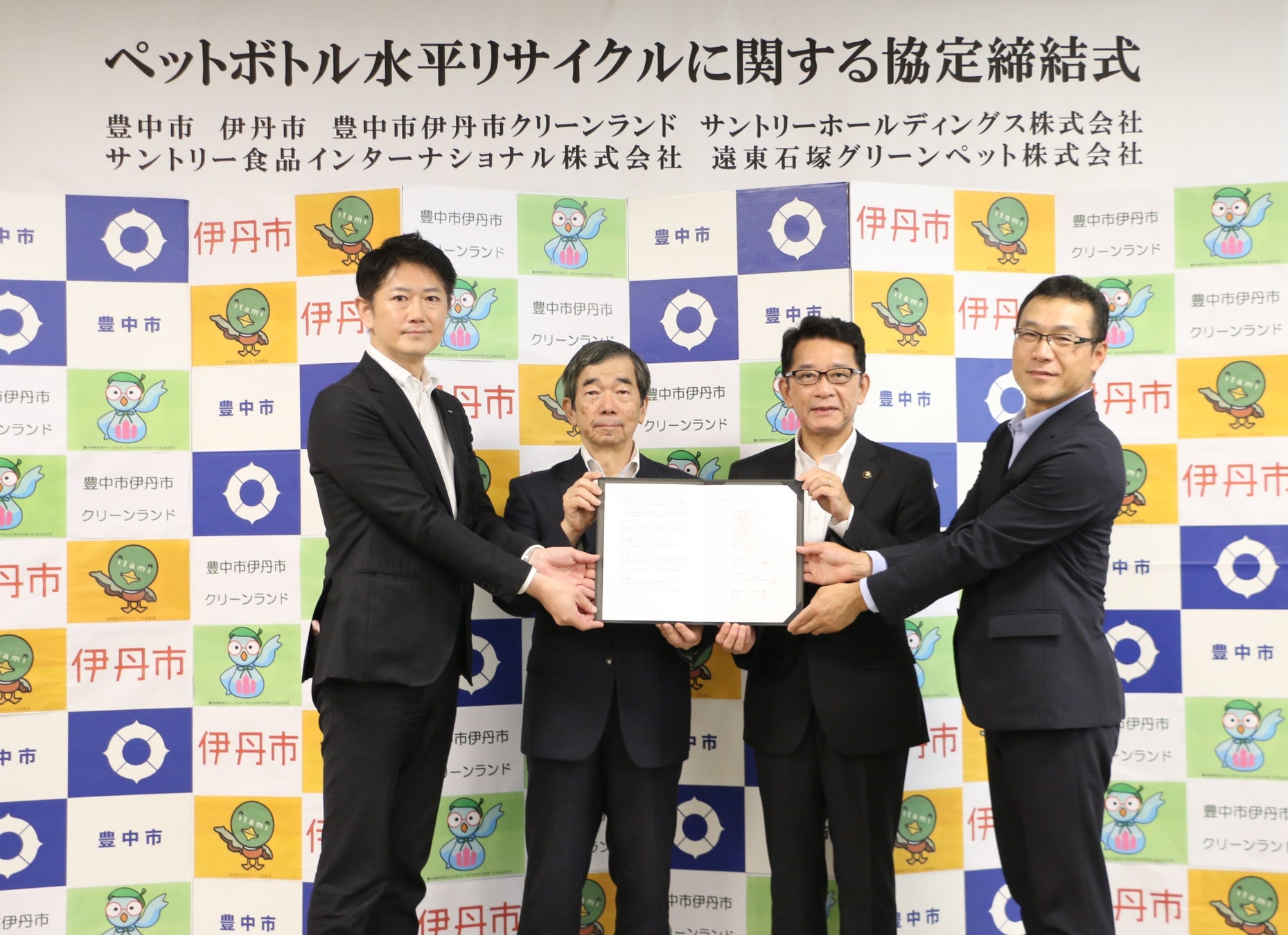 豊中市は、伊丹市、豊中市伊丹市クリーンランド、サントリーホールディングス株式会社、サントリー食品インターナショナル株式会社及び遠東石塚グリーンペット株式会社の6者で、ペットボトルをペットボトルにリサイクルする水平リサイクルに関する協定を締結しました。