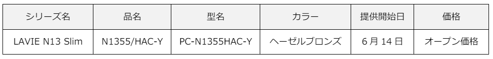 株式会社ヤマダホールディングス(本社:群馬県高崎市、代表取締役会長 兼 社長CEO:山田 昇、以下、ヤマダホールディングス)は、NECパーソナルコンピュータ株式会社の全面的な協力に基づき開発した「LAVIE N13 Slim」の新モデルを2024年6月14日(金)より全国のヤマダホールディングスグループ店舗、及びヤマダウェブコムにて販売開始いたします。