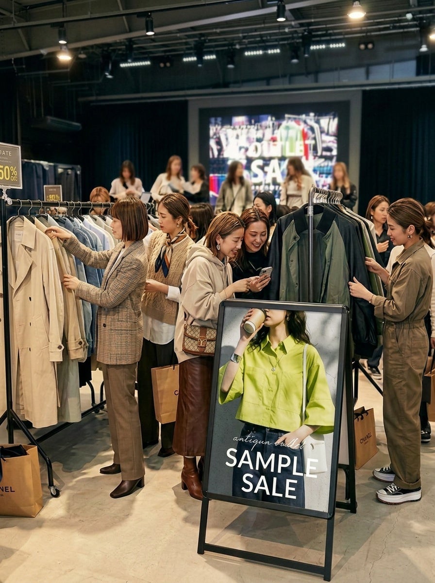 「antiqua SAMPLE SALE」は、人気ブランドantiquaのアイテムが特別価格で登場する注目のショッピングイベントです。