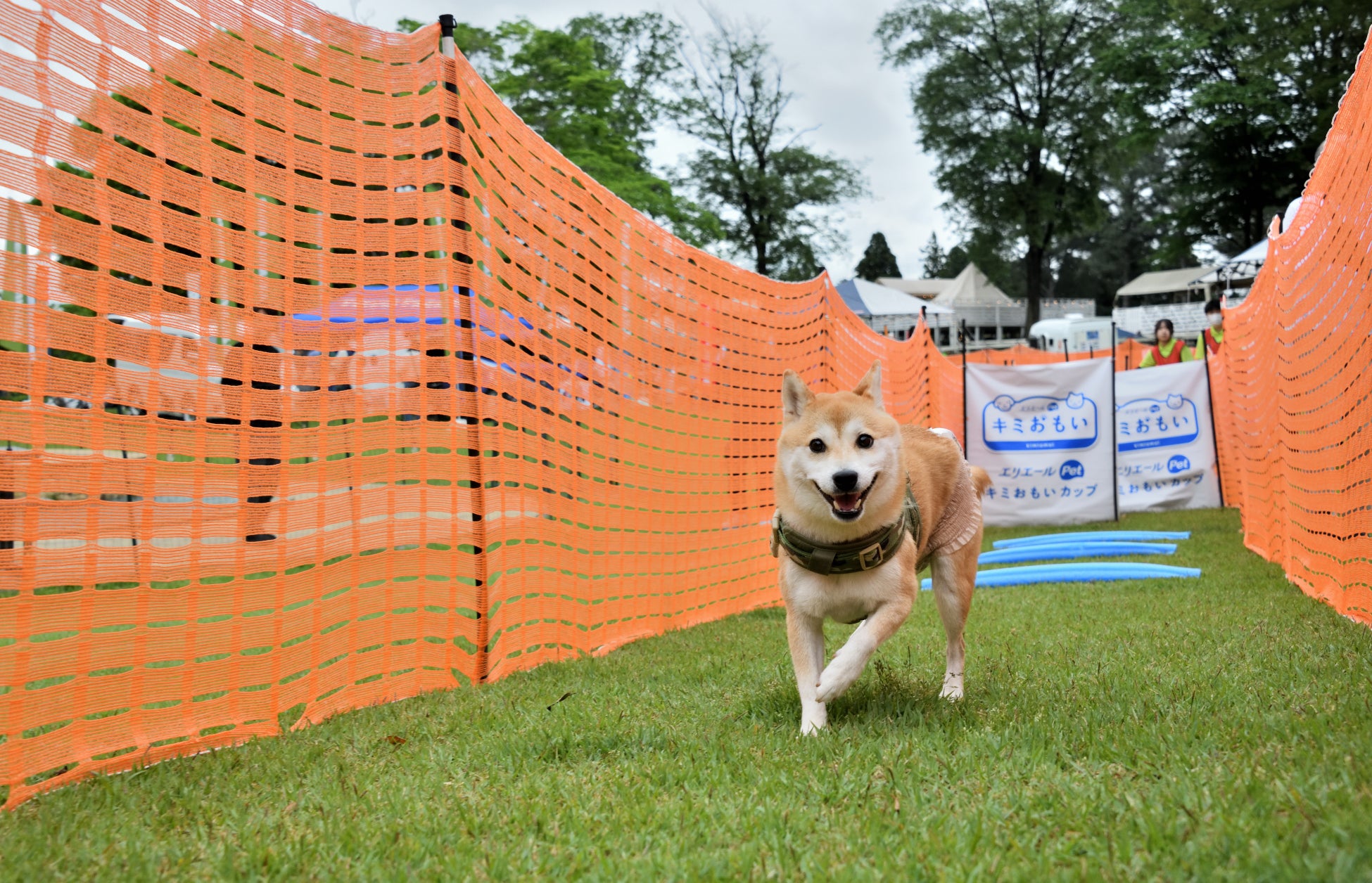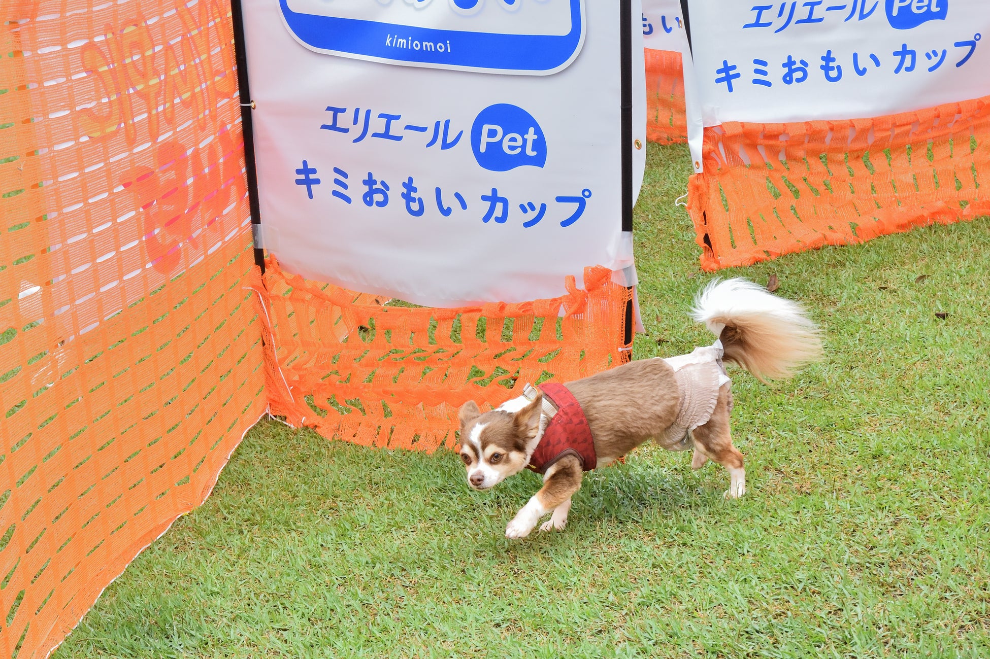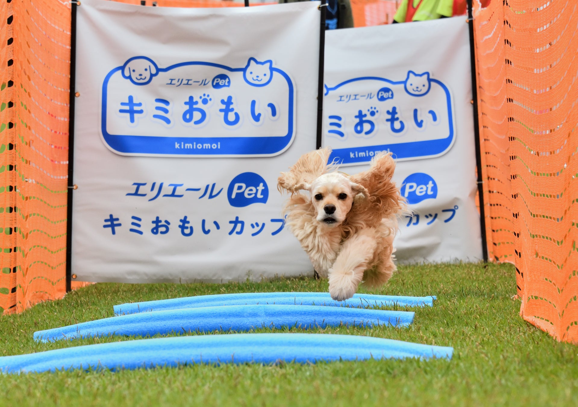 2日間で143組のワンちゃんとペットオーナーさんが参加する白熱した大会に!パンツタイプのおむつをはいたワンちゃんと一緒に参加するミニトラップレース『エリエールPet キミおもいカップ』を初開催