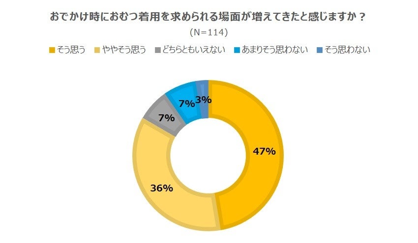 ①おでかけ時におむつ着用を求められる場面が増えてきたと感じますか?(5段階評価)