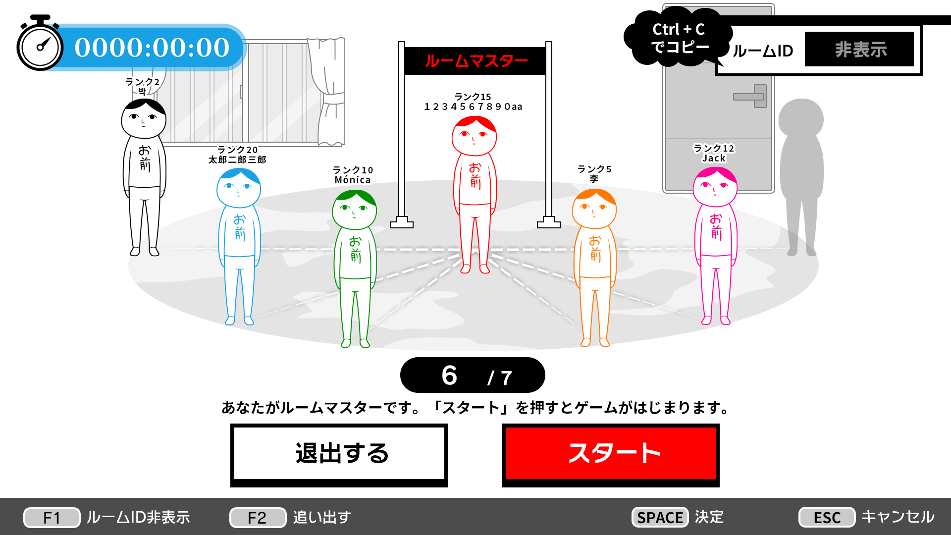 また、招待された他プレイヤーは「ルームID」を入力することで、専用ルームに入室できます。