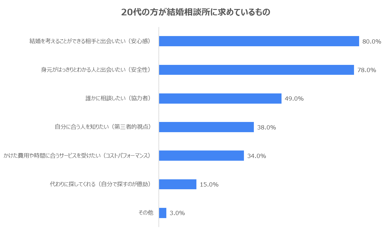 続いて、20代の方が結婚相談所に求めているものについて聞きました。