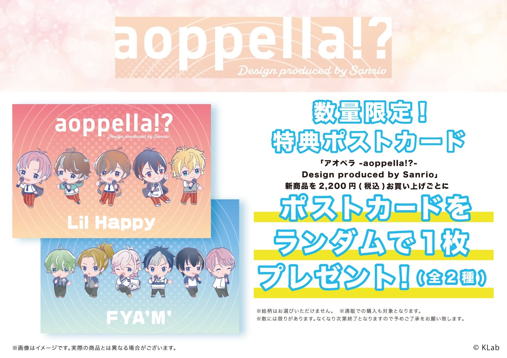 KLab株式会社(本社:東京都港区、代表取締役社長:森田英克、以下「KLab」)がおくる、「青春」×「アカペラ」がテーマの音楽原作プロジェクト『アオペラ -aoppella!?-』(以下、『アオペラ』)は、2023年2月24日(金)よりサンリオのアニメ・ゲーム関連コンテンツグッズの常設専門店「Sanrio animestore(サンリオアニメストア)」において、デザインプロデュースグッズの発売が決定したことをお知らせします。