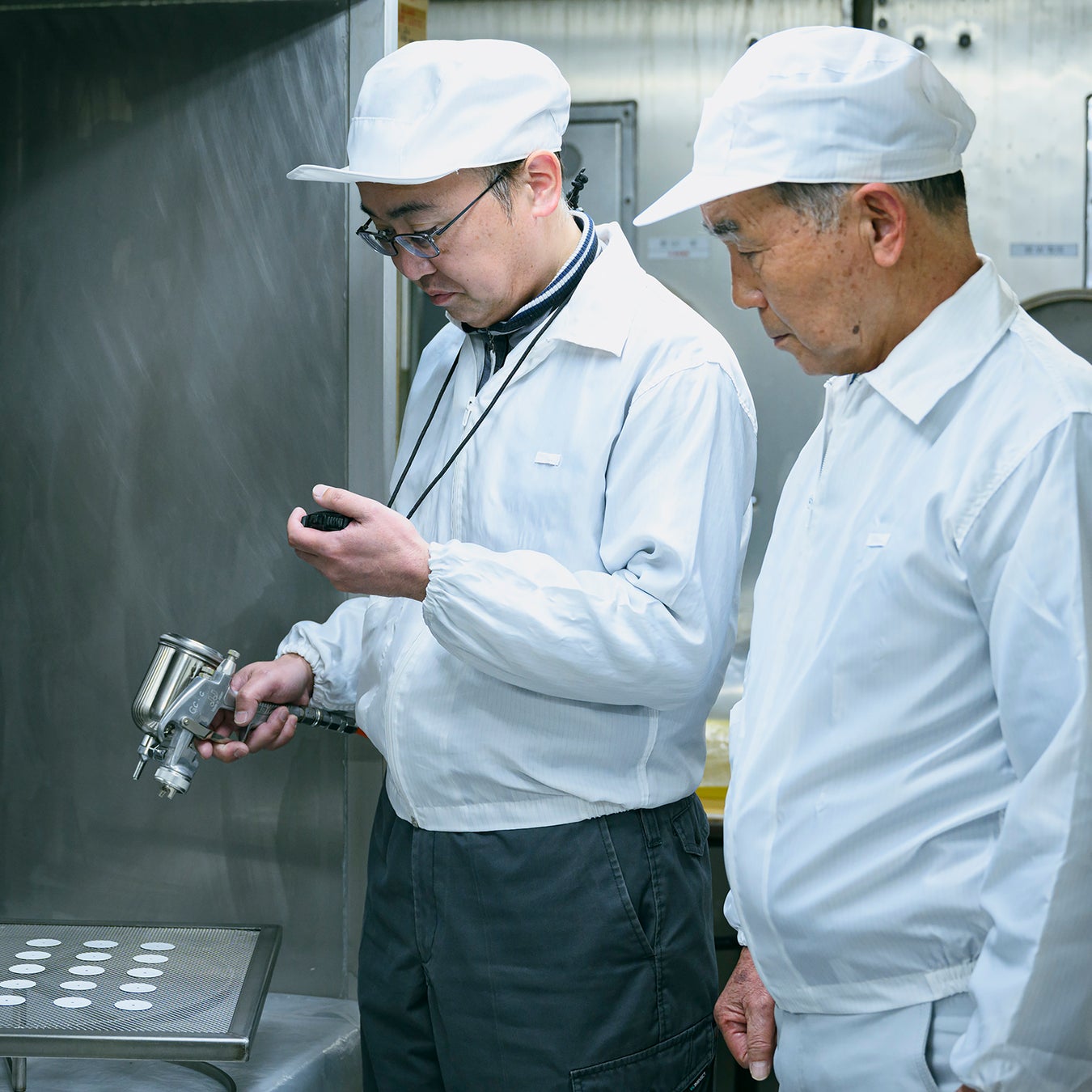 富士ホーロー株式会社つくば工場に所属。技術顧問。塗布面の仕上がりのわずか0.01mmの厚みを見抜く眼力を持ちます。寸法精度が求められるダイヤルを琺瑯で作ることができる日本有数の職人です。