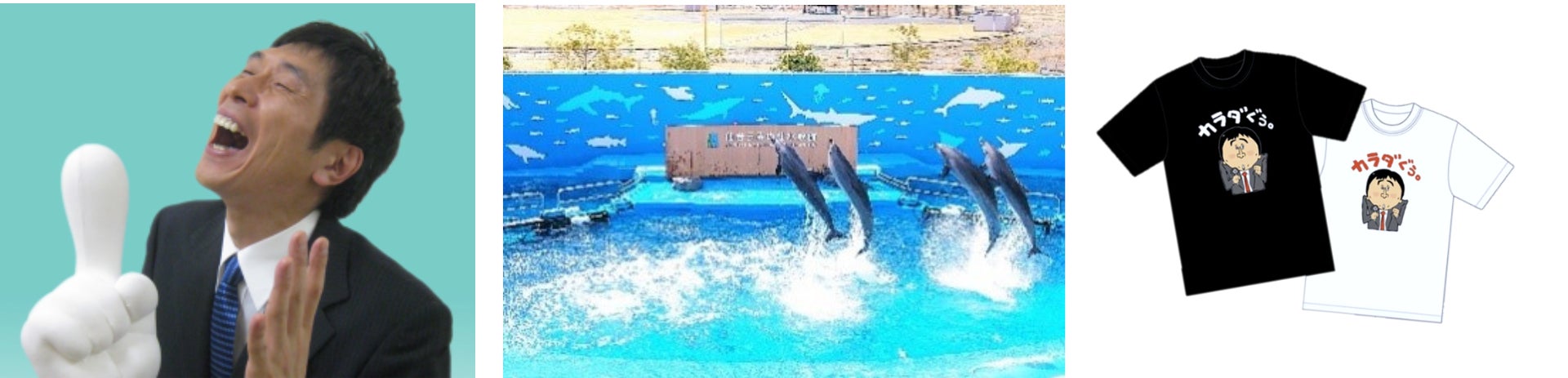 あの話題になった「カラダぐぅ」や「くるっくぅ」を生で聞けちゃうかも?!さらにイルカとのコラボレーションも!野外ステージ横の物販ブースにてほいけんたのTシャツやタオルなどを販売します。