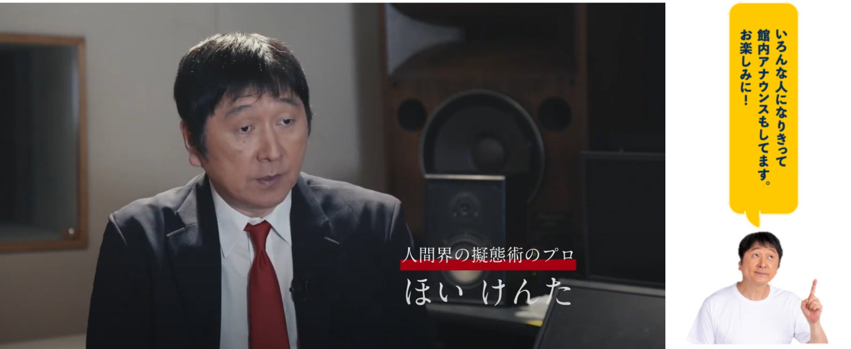 また、「人間界の擬態術のプロ」として、「ほいけんた」さんをアンバサダーに招き、擬態展とのコラボ企画を実施します。10月12日(土)には、1日館長として「ほいけんた」さんが来館し、モノマネライブなどを行います。