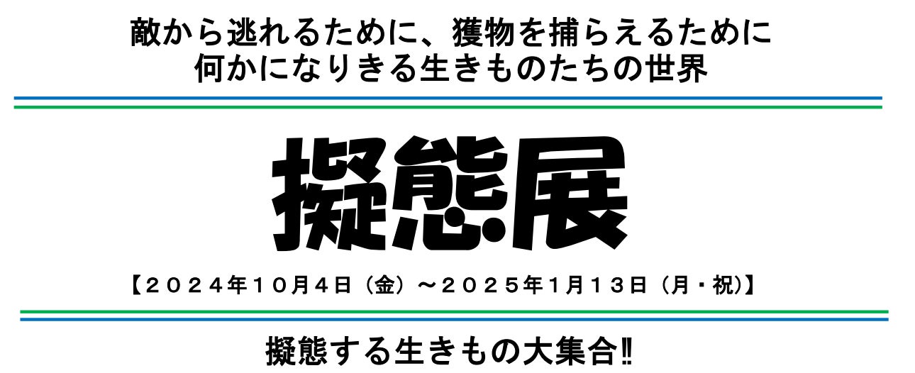 擬態する生きものたちを、天敵から身を守るために隠れる「守りの擬態」、獲物に気づかれないように隠れる「攻めの擬態」の2つに分けて展示を展開し、生き抜くための、みえない工夫を紹介します。