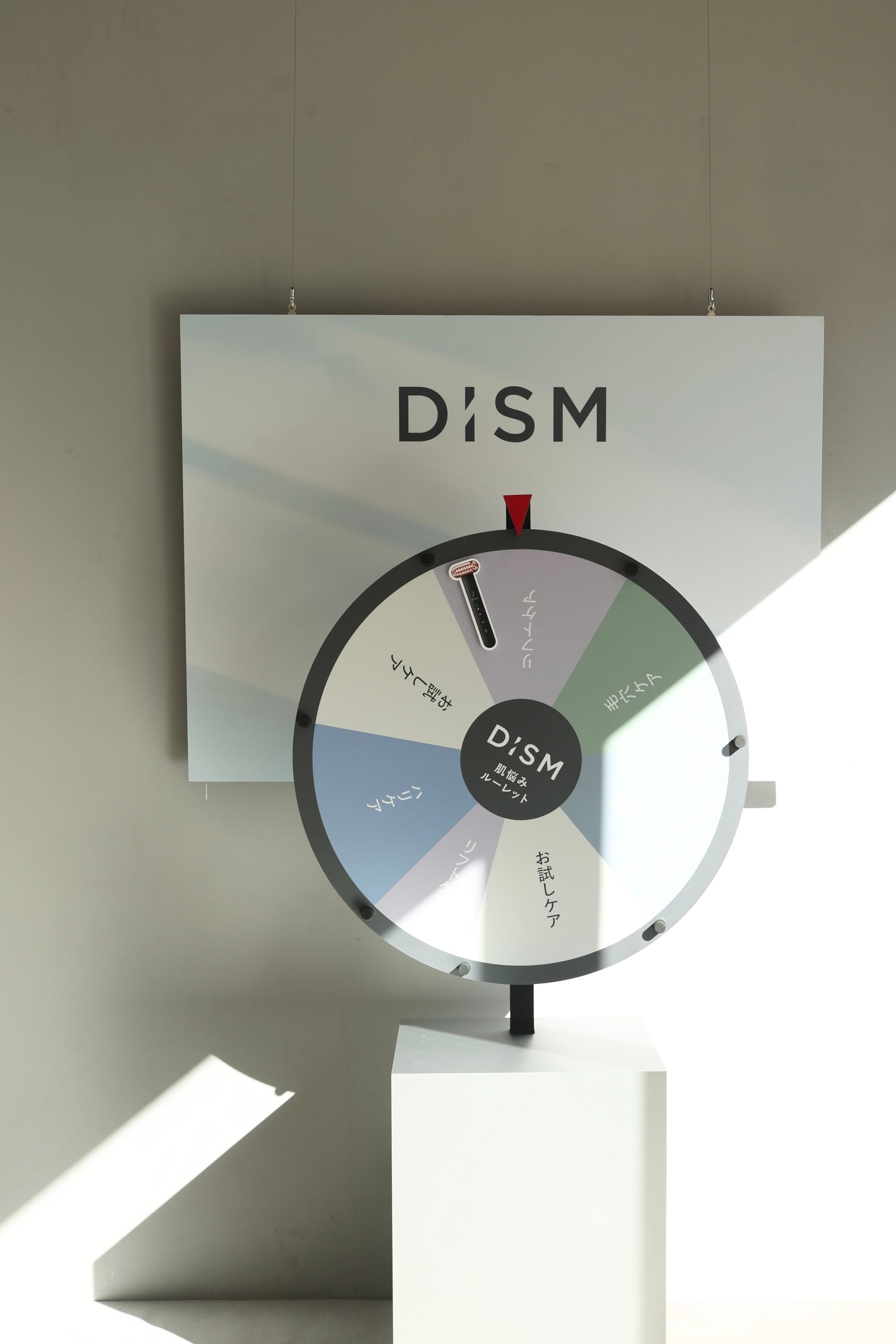 美容を愉しむ遊び心の表現の1つとして用意した「DISM肌悩みルーレット」では、人気雑誌のベストコスメを数々受賞した約3万円相当のT字型美顔器を含む、ルーレットで当たった肌悩みに対するケアアイテムをプレゼントいたしました。