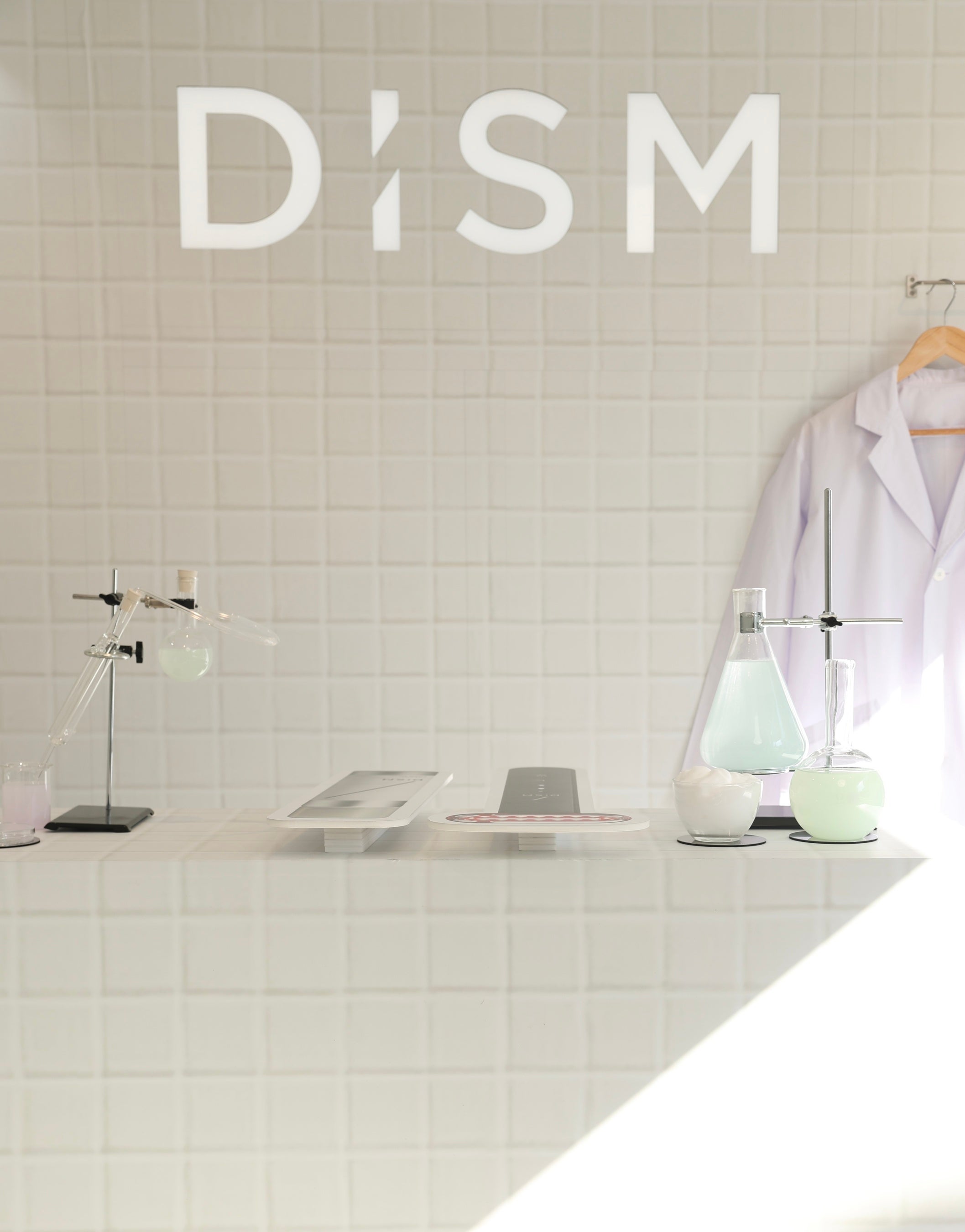 今回、「美容を愉しむきっかけを創りたい」、「DISMのこだわりを深く知っていただく機会をつくりたい」という想いから、性別を問わず多くの方にご来場いただけるポップアップストアを開催しました。洗練された「研究所」をイメージした空間で、DISMの肌へのこだわりを体感いただける場をご用意しました。