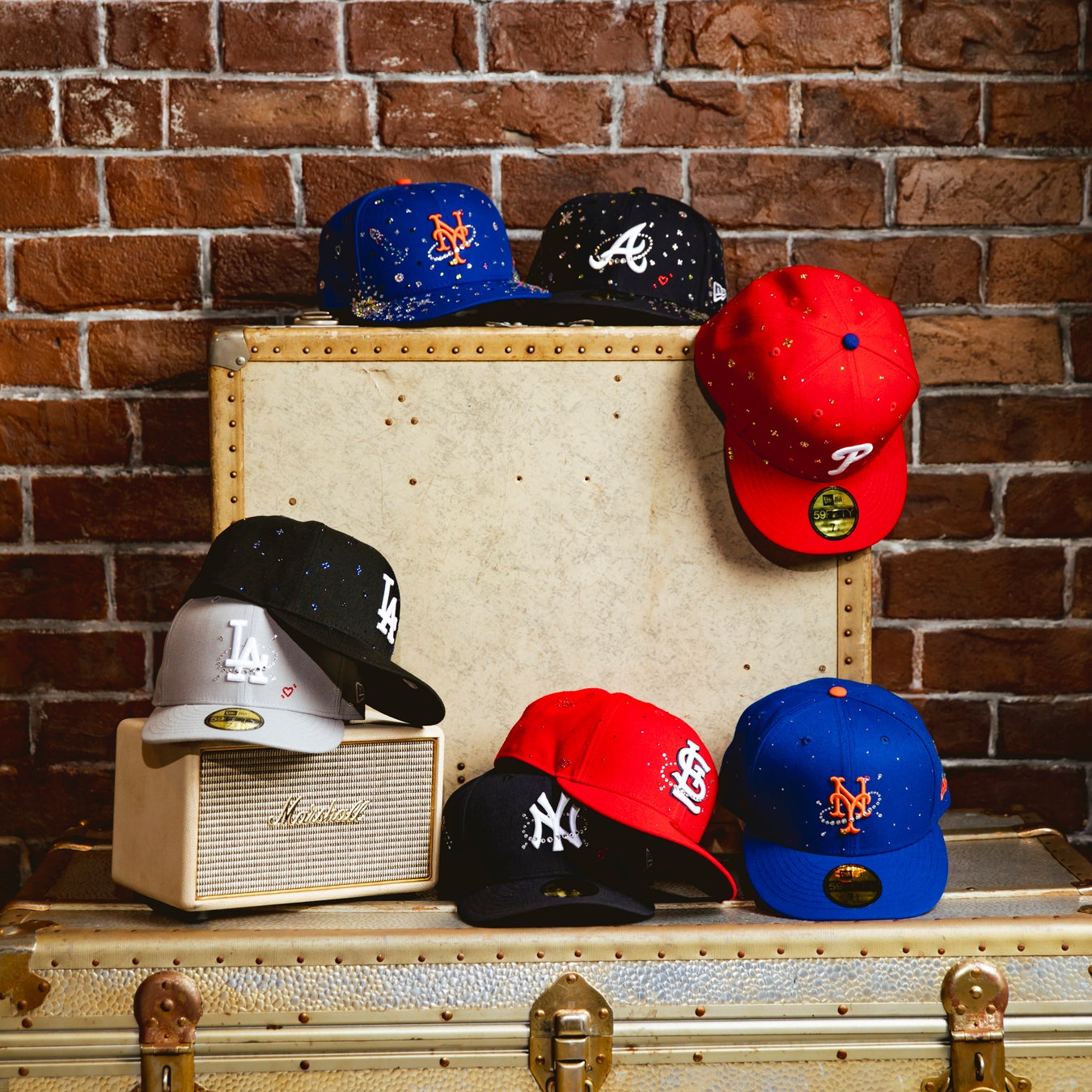 これらの多彩なデザインが揃った「Jewel Cap」コレクションは、全24種類を展開。ベースボールキャップの新たな可能性を追求し、ストリートウェアとジュエリーの融合を極限まで高めた、まさにアートピースとも呼べる逸品です。