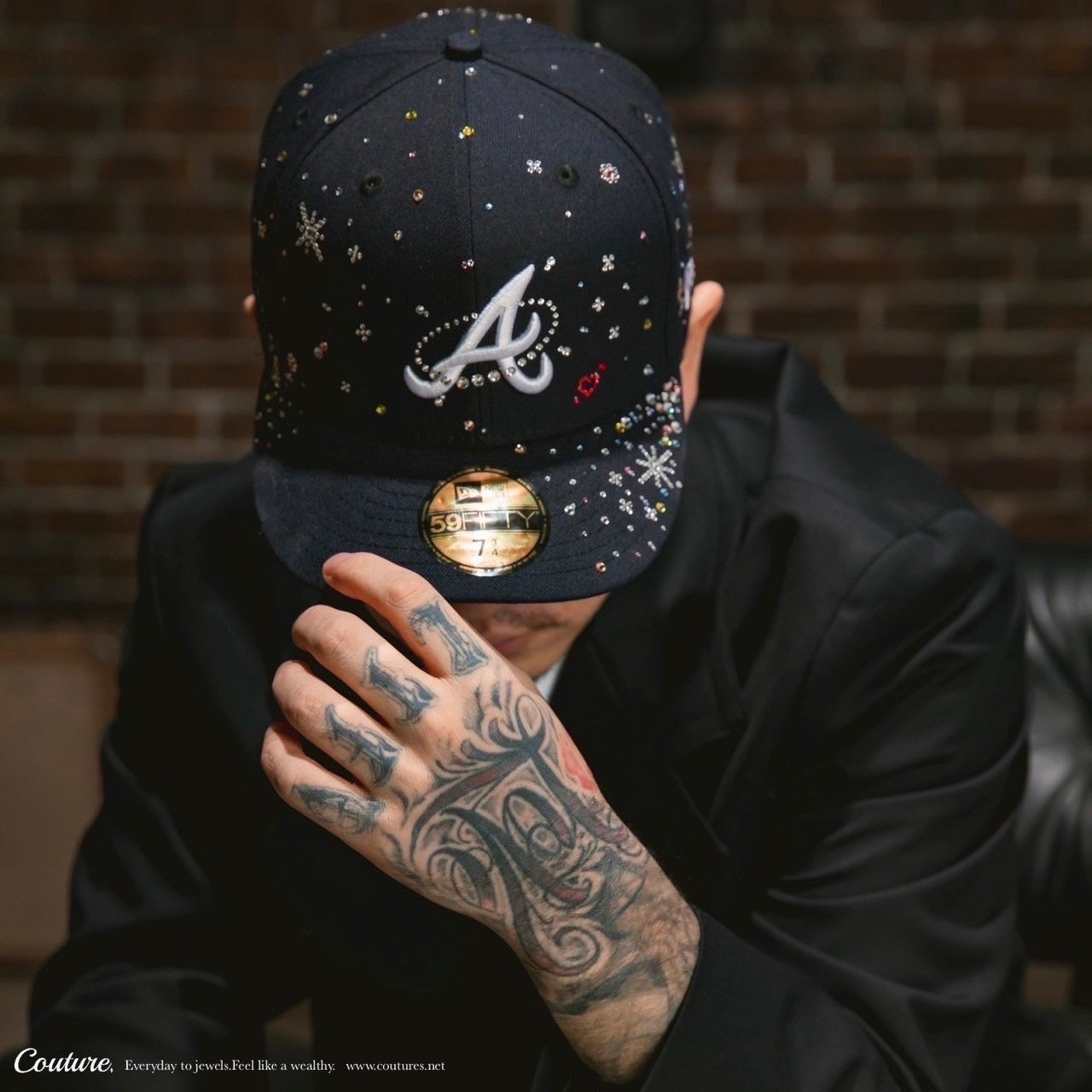 Coutureが展開する「Jewel Cap」は、ベースボールキャップの概念を覆す、ラグジュアリーなアートジュエリーアイテムです。各キャップは、Coutureに所属するアーティストたちの手作業によって、一つひとつ丁寧にスワロフスキークリスタルが装飾され、唯一無二の輝きを放つデザインへと昇華されています。