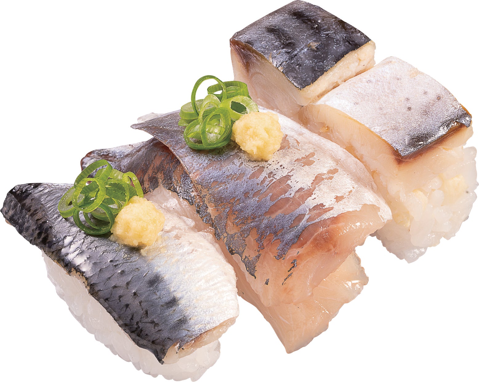 3 種の光物食べ比べ(北釧まいわし・国産天然あじ二枚重ね・肉厚とろ〆さばの押し寿司)
