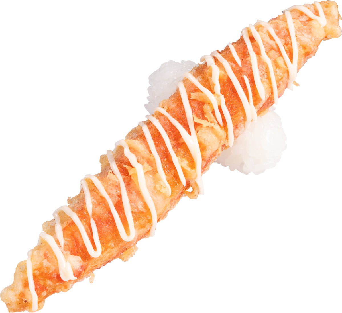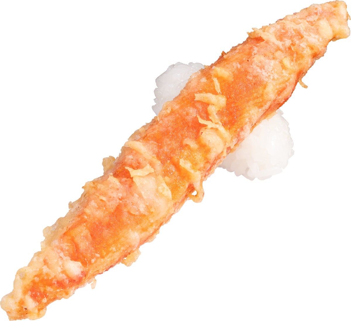 かにかま天を一本のせた、おこさまにも人気のにぎりです。