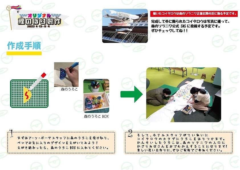 家族や友達と一緒に、オリジナルの鯉のぼり(コイタロウの鱗)を作って、